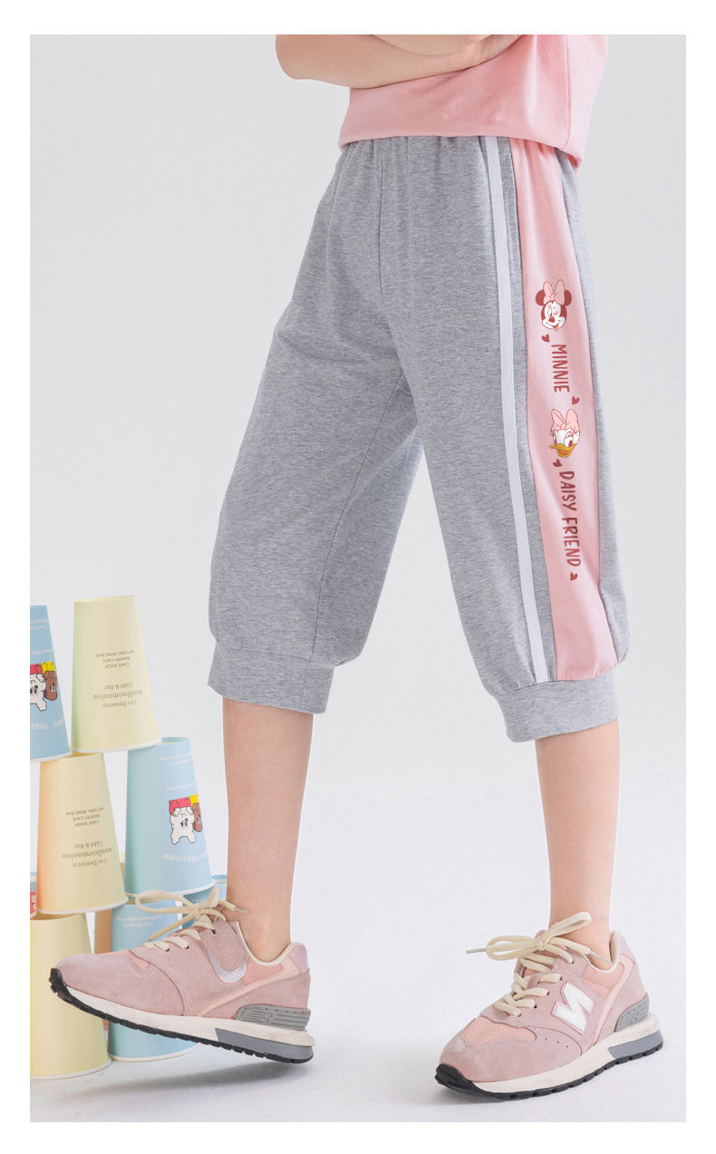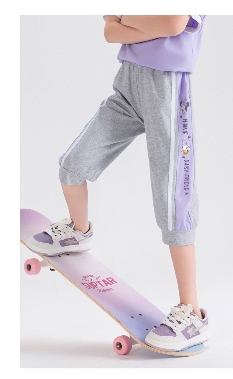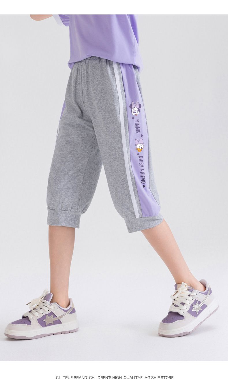迪士尼女童七分裤夏季外穿2025新款洋气儿童短裤运动速干薄款裤子