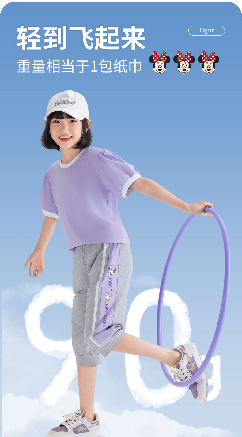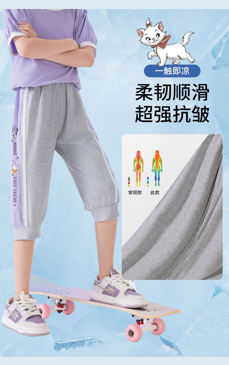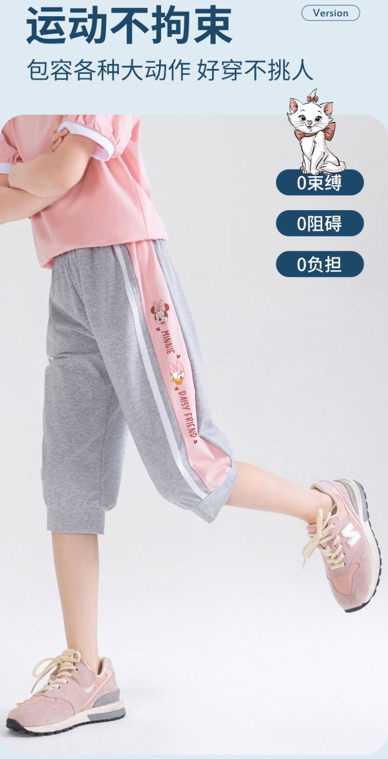 迪士尼女童七分裤夏季外穿2025新款洋气儿童短裤运动速干薄款裤子