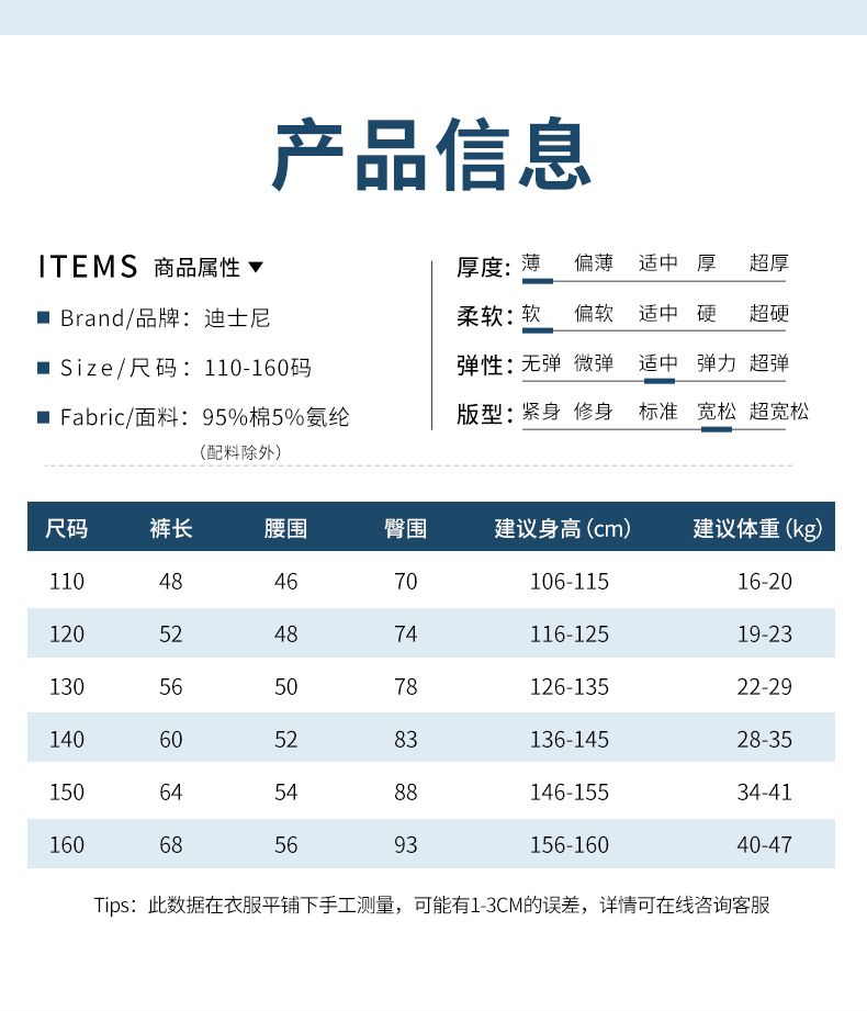唯品迪士尼女童春秋款元青拼阔腿裤