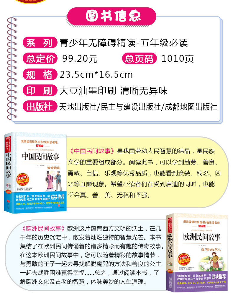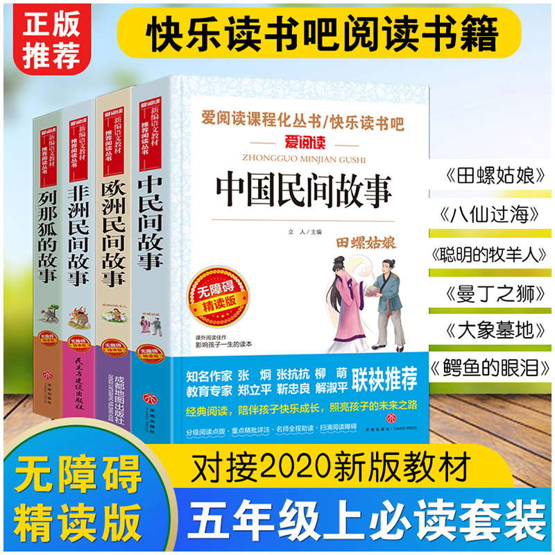 全套4册中国民间故事五年级上册课外书必读老师推荐欧洲非洲古代小学生阅读书籍快乐读书吧5上学期语文集田螺姑娘列那狐的暑假指定