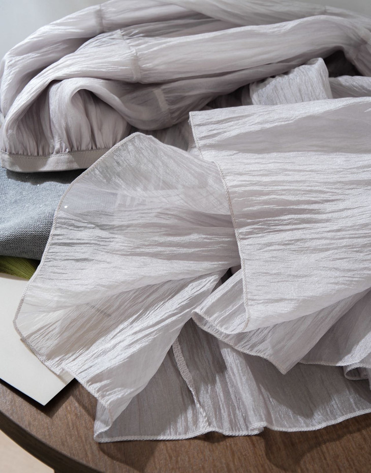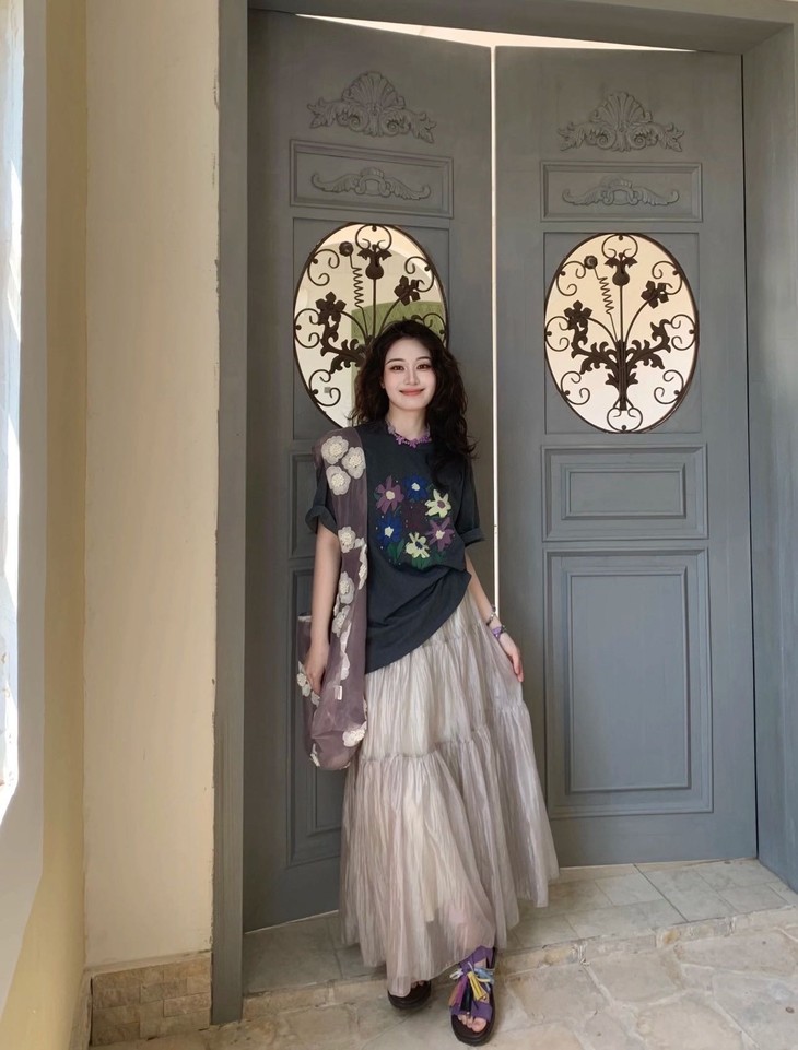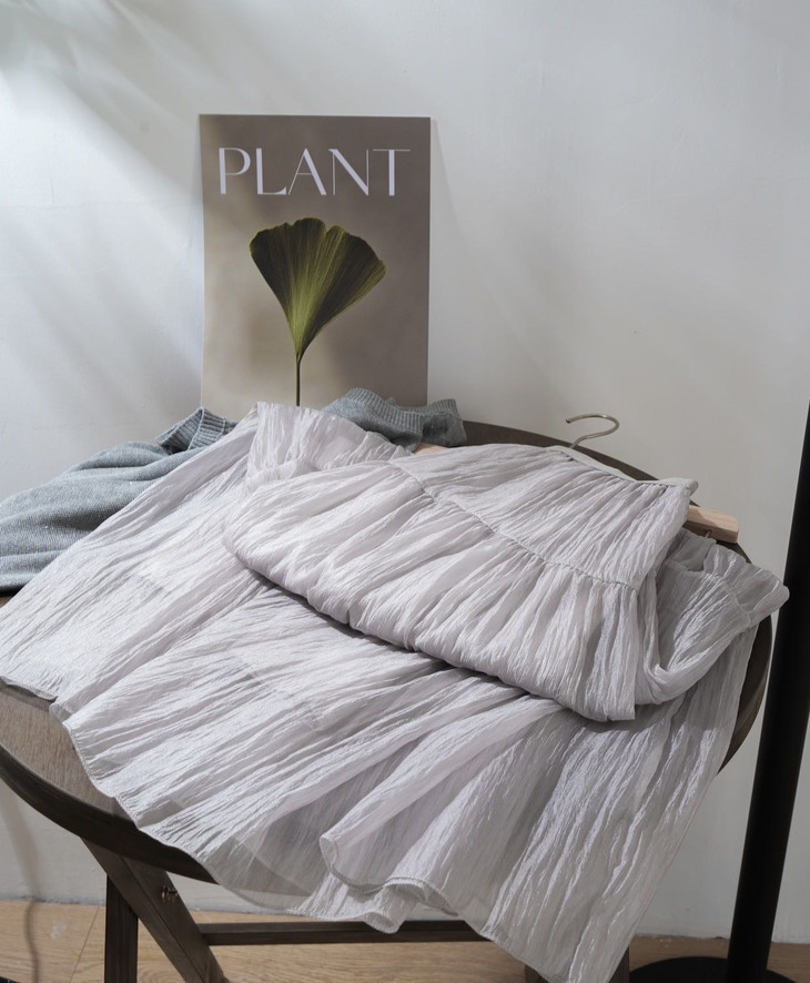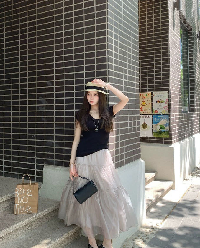 绝美的月亮灰半身裙❤️自带哑光光泽感 在不同光线环境下呈现出别样的珠光感 肌理之间的微皱肌理,让织面经纬之间的结构比较通透, 轻盈凉爽,犹如夏日里的一缕清风~ 轻薄的质地如同“轻纱薄幔” 以此才能体现出这块衣料的通透、仙气,非常夏天 裙子的长度刚刚好 显腿细又灵动的效果 特别走起路来很仙气飘飘 动态更美 真的太温柔太仙气了!! 一上身,就有种说不清道不明的清爽感女人味✨