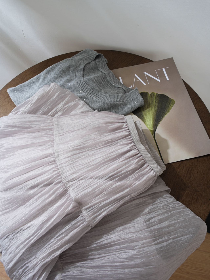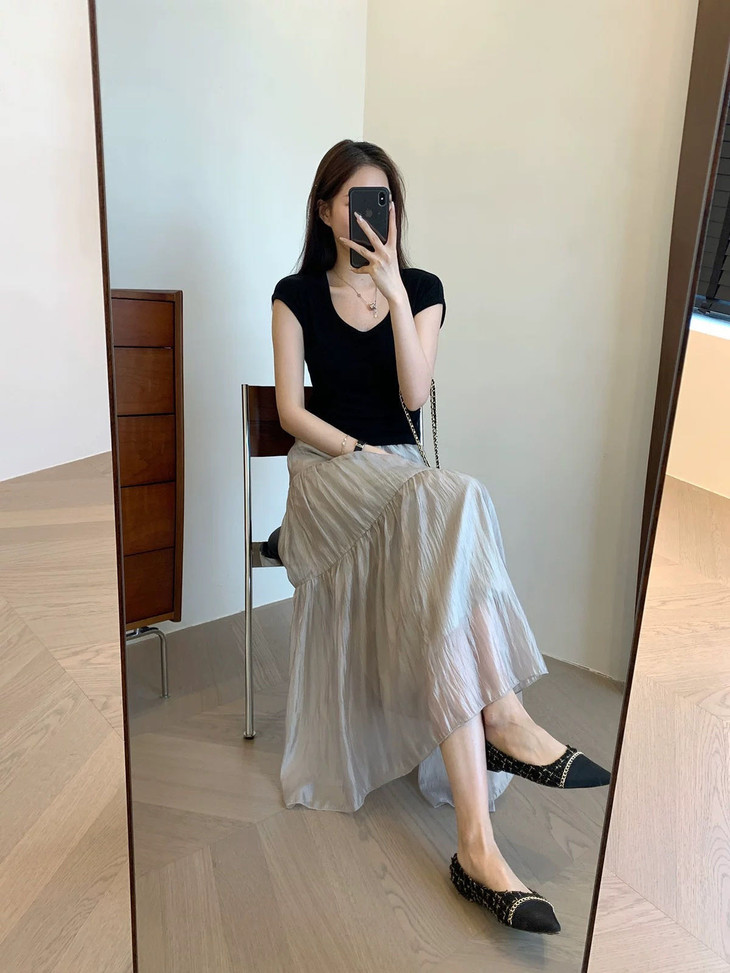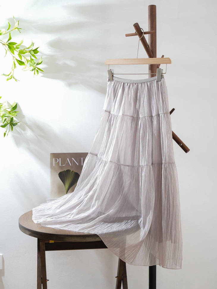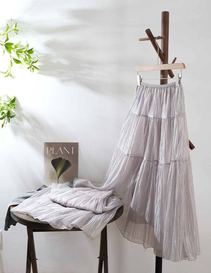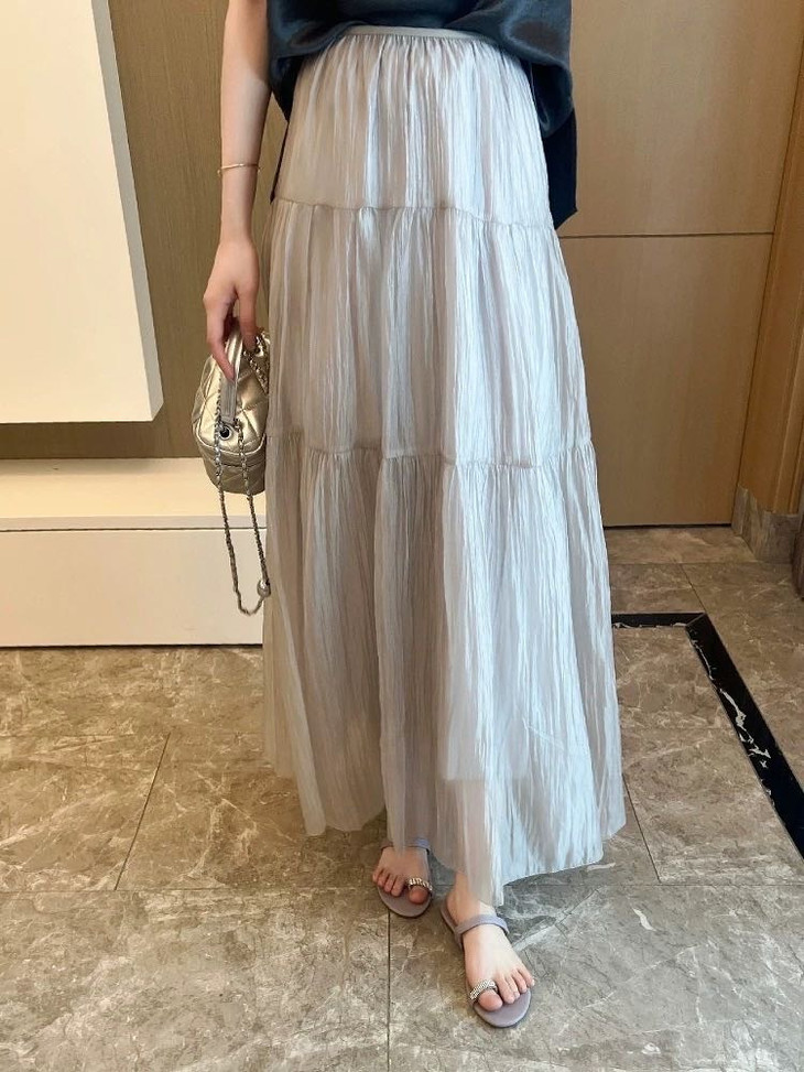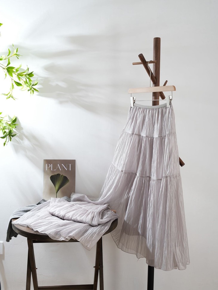 🔥限时秒杀💰59😍自带哑光光泽感【仟梓赫 月亮灰半身裙】轻盈凉爽✨裙子长度刚好,显腿细又灵动🥰走起路来仙气飘飘~