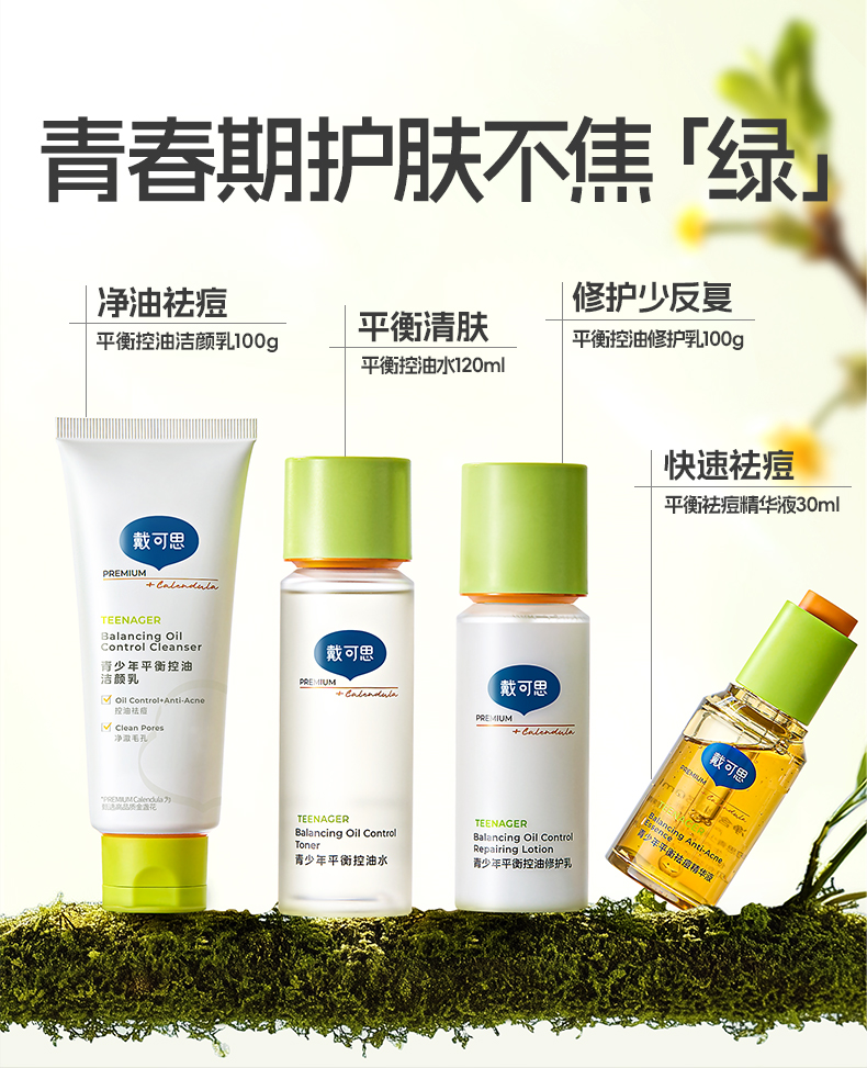 【戴可思青少年控油祛痘四件套 骆仰仰推荐】控油修护 净护肌肤 改善痘肌痘印 青春不烦恼