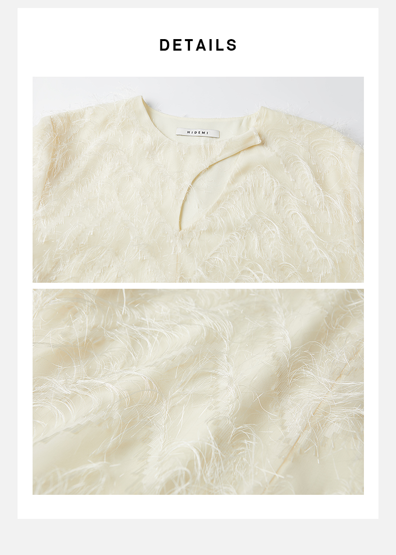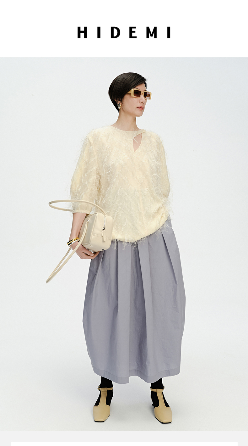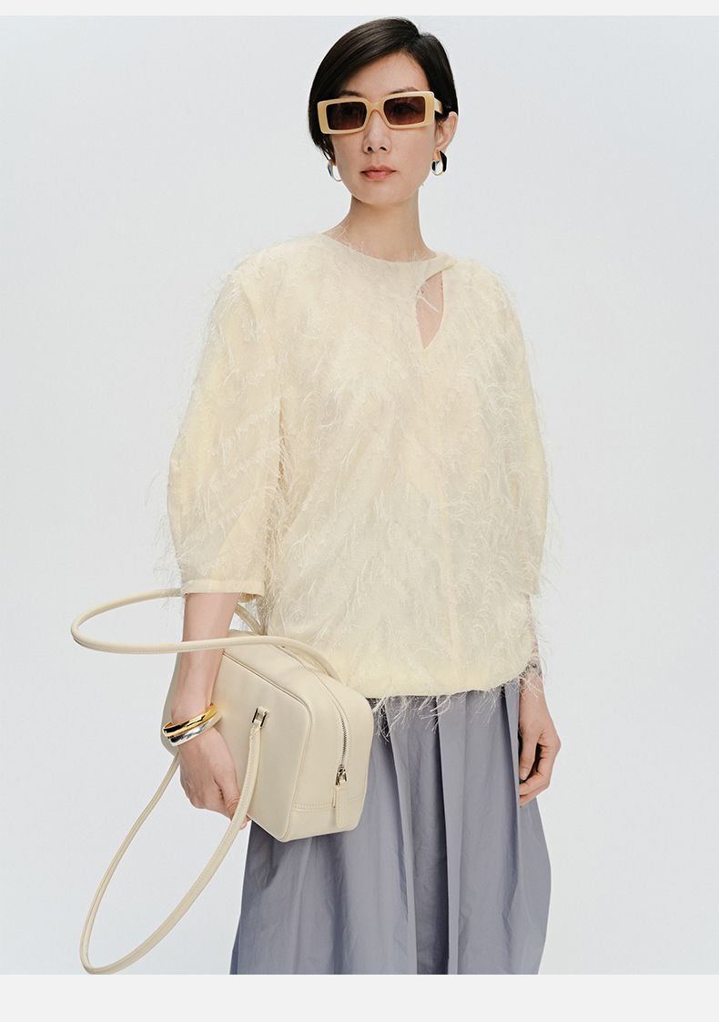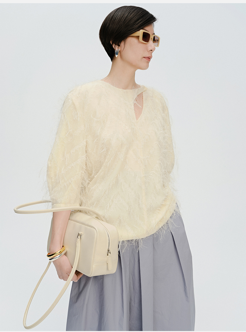 HIDEMI 软雕塑立体短流苏设计感不对称镂空设计廓形袖上衣