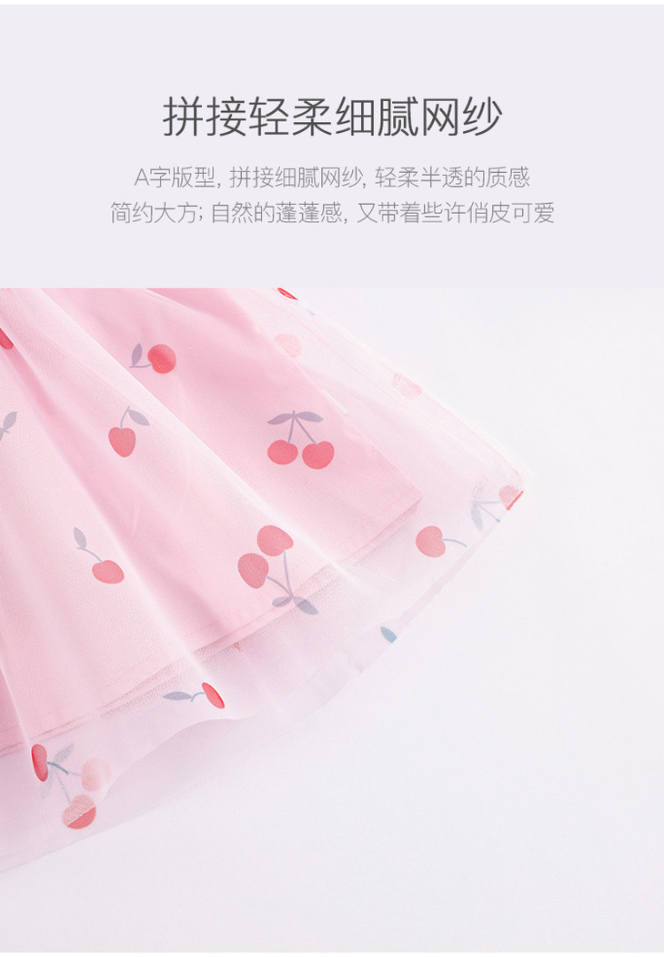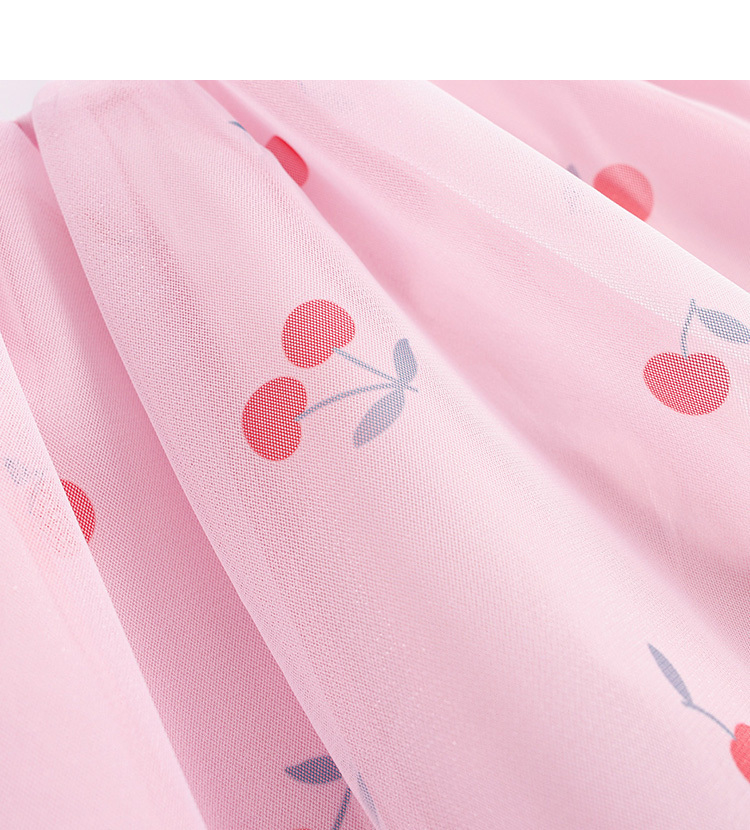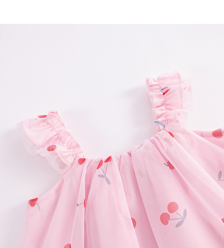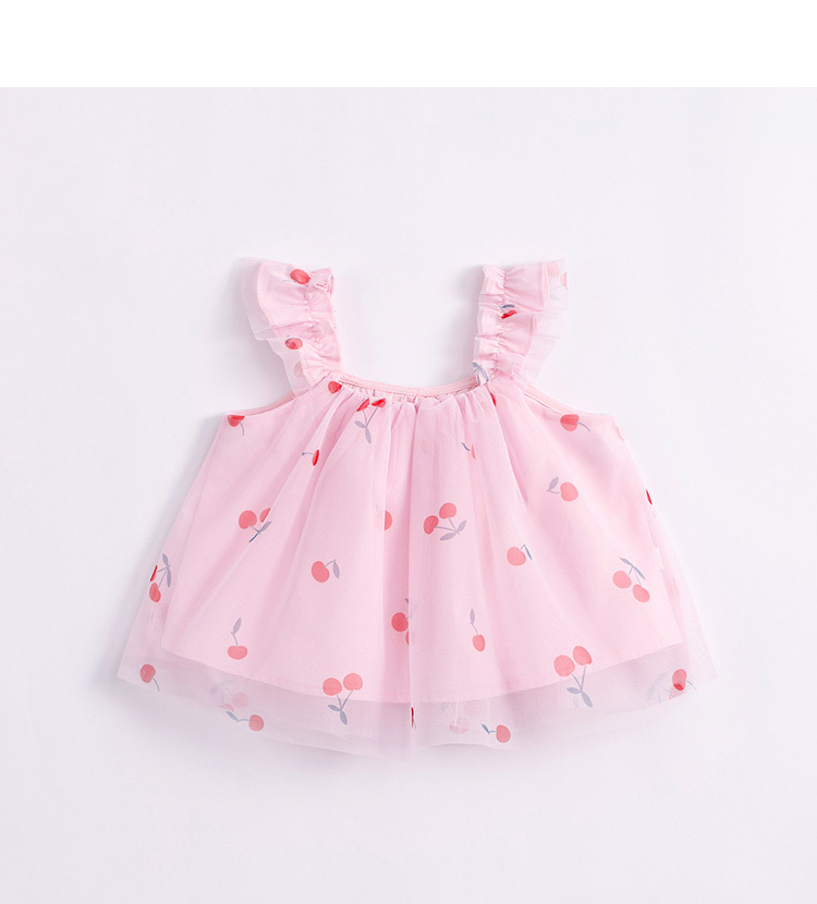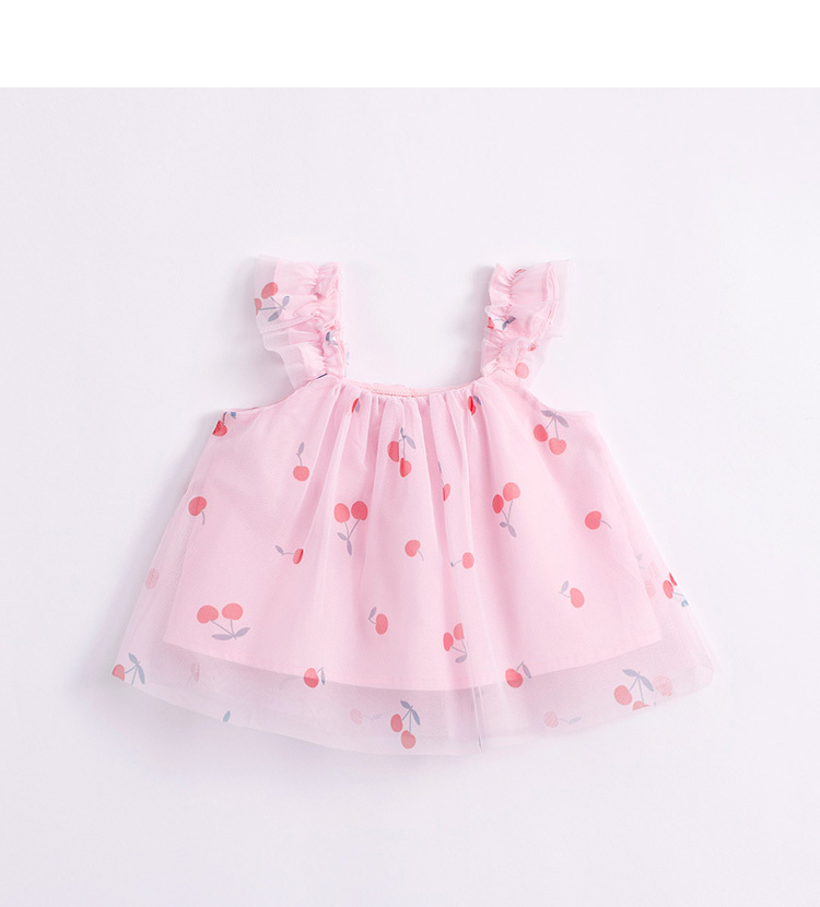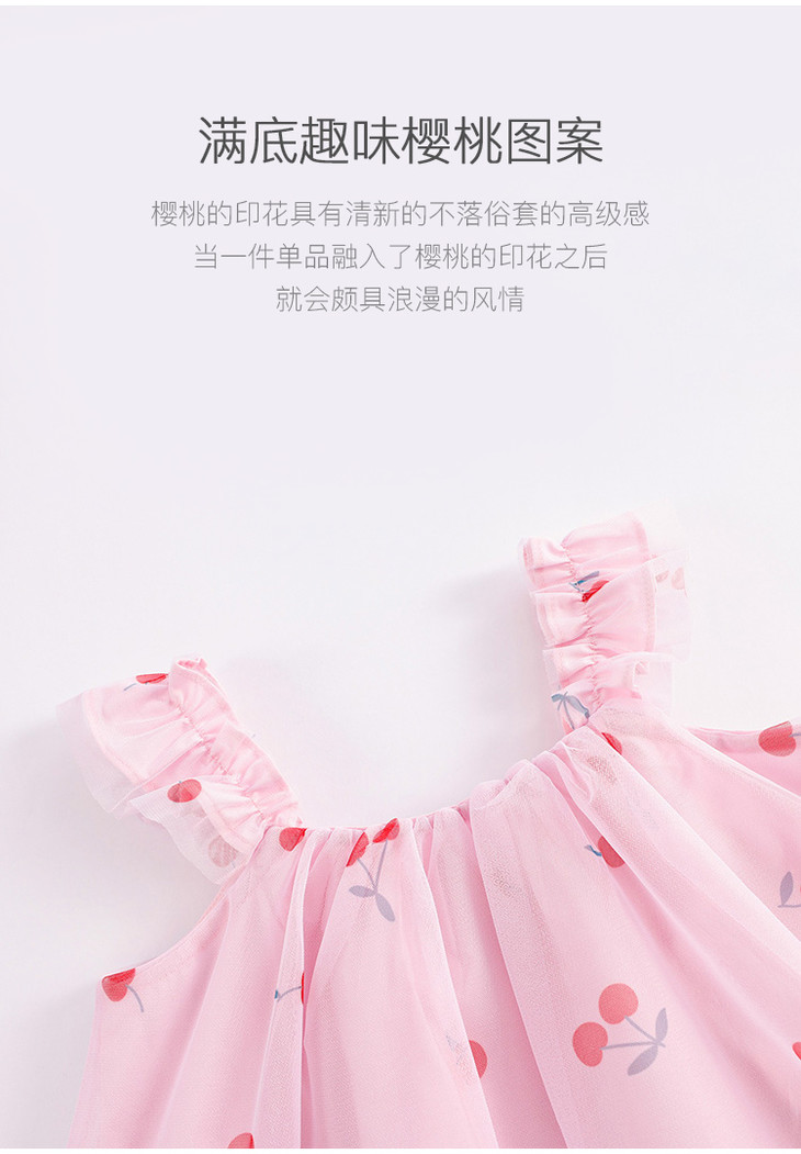 马克珍妮新款夏装 女童趣味樱桃网纱花边吊带小衫231056