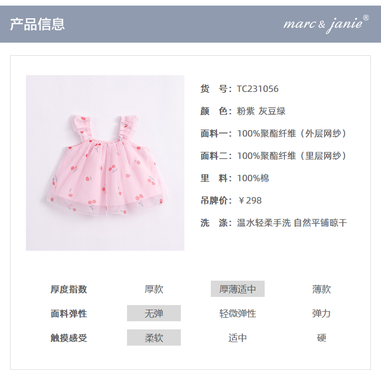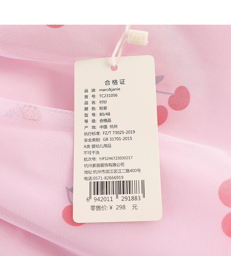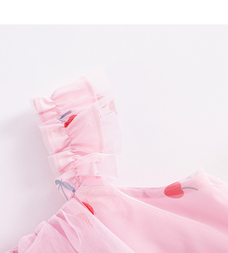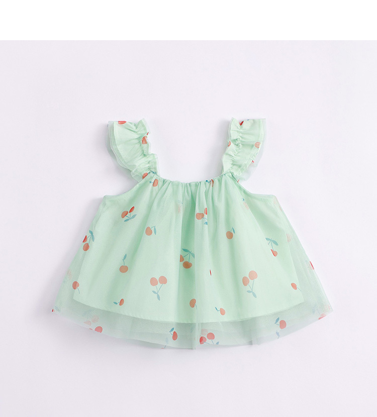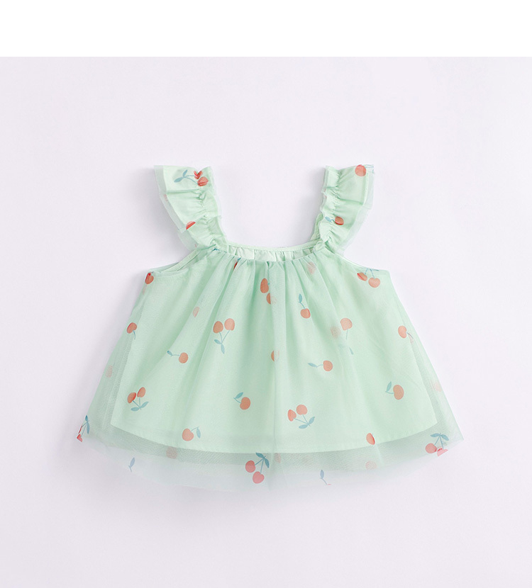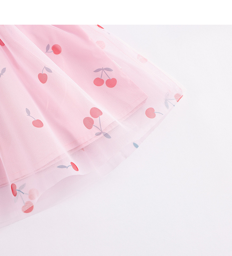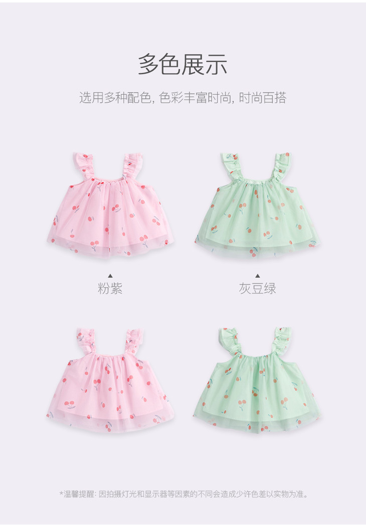 马克珍妮新款夏装 女童趣味樱桃网纱花边吊带小衫231056