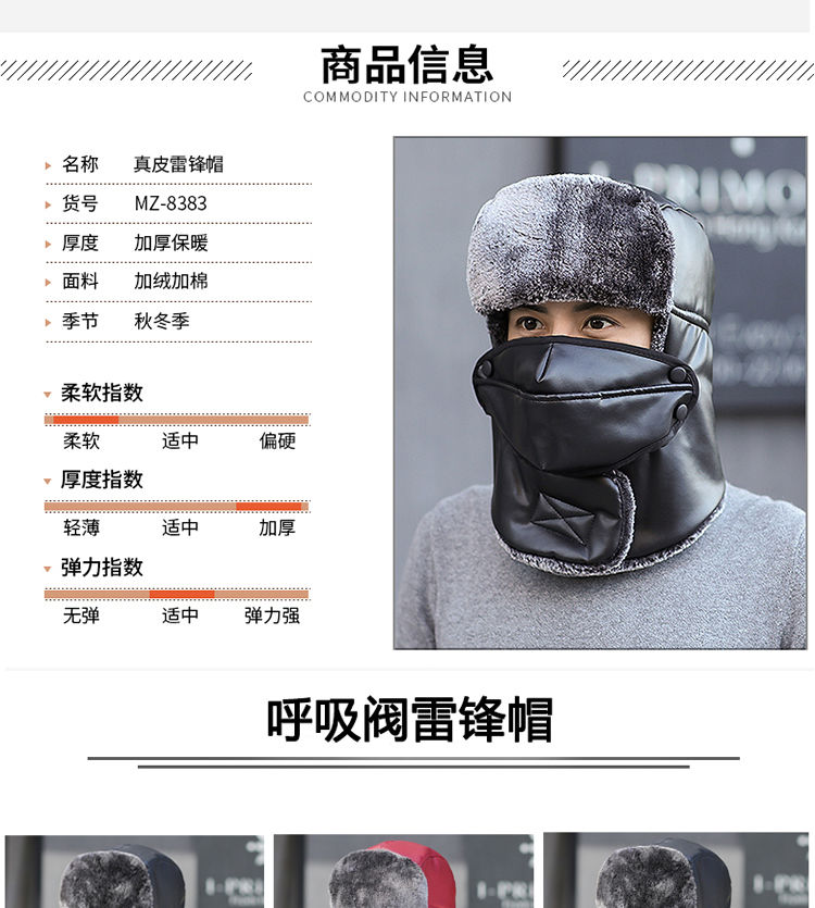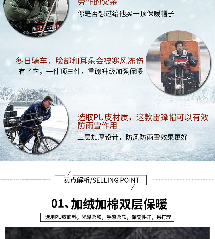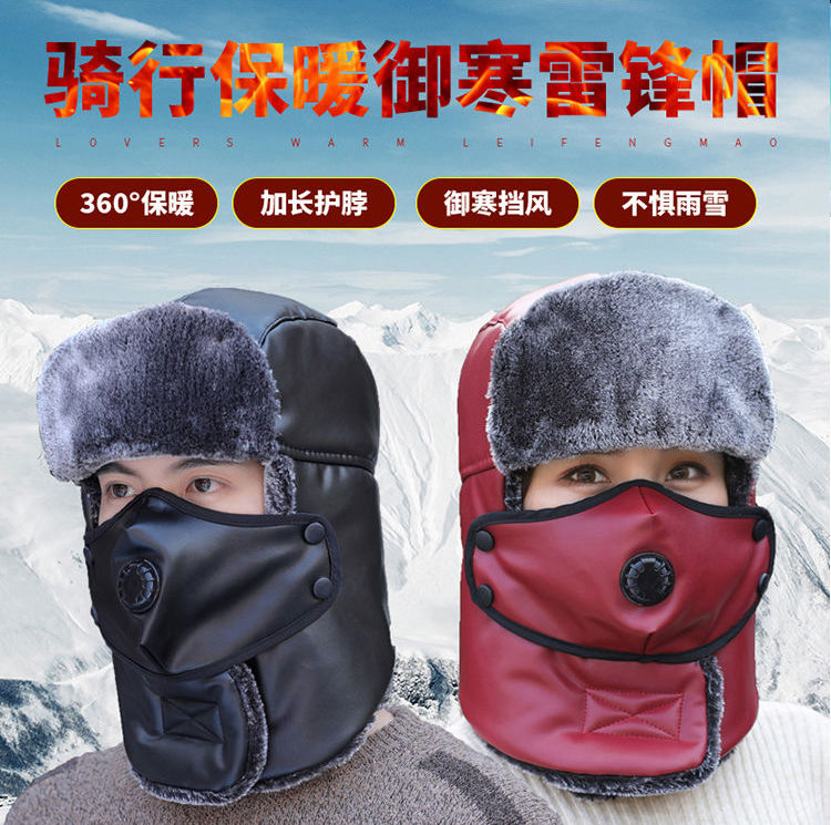 雷锋帽男女冬季户外骑车防风护耳防寒帽中年男加厚保暖棉帽子