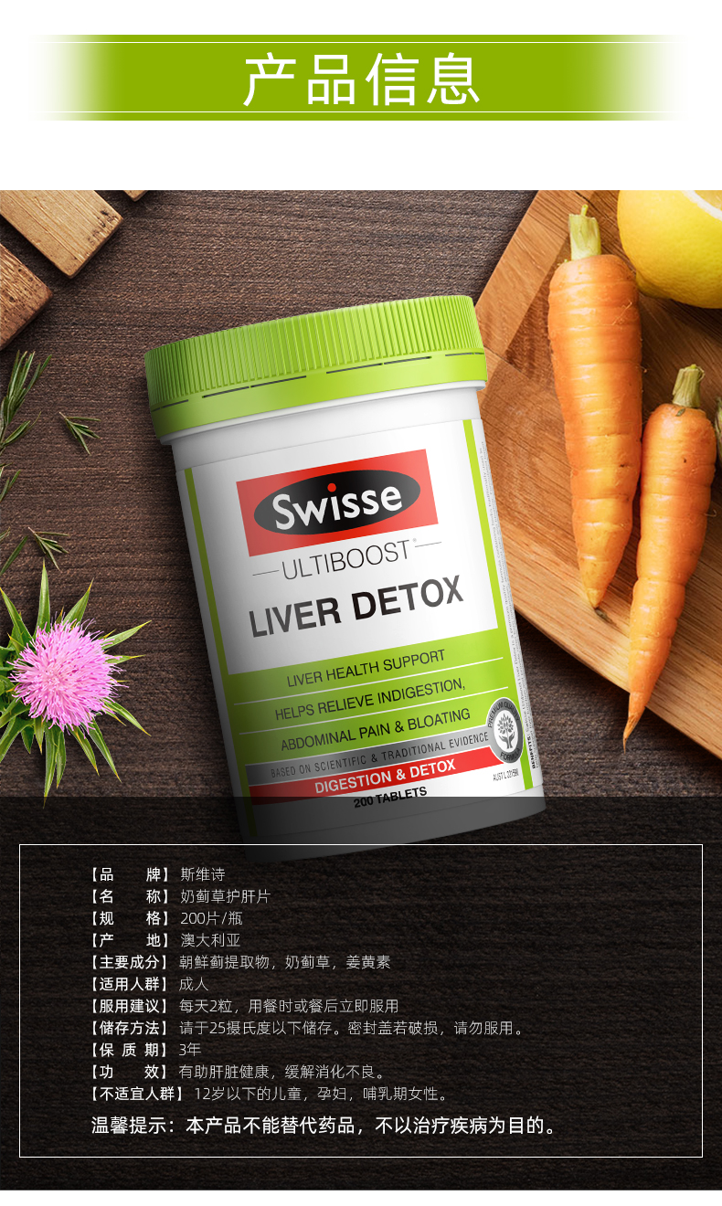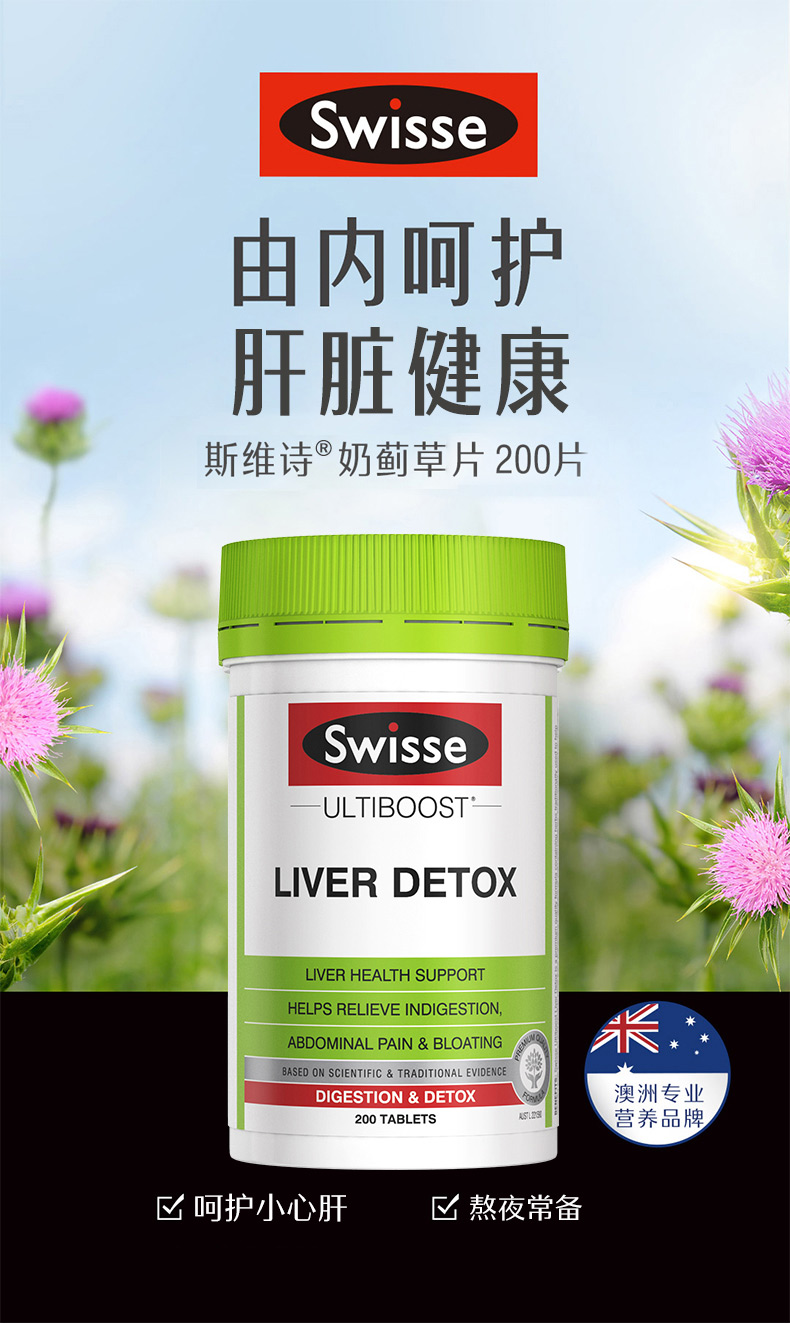 【新春五折秒杀】澳洲Swisse斯维诗奶蓟草姜黄解酒药奶蓟草片200粒