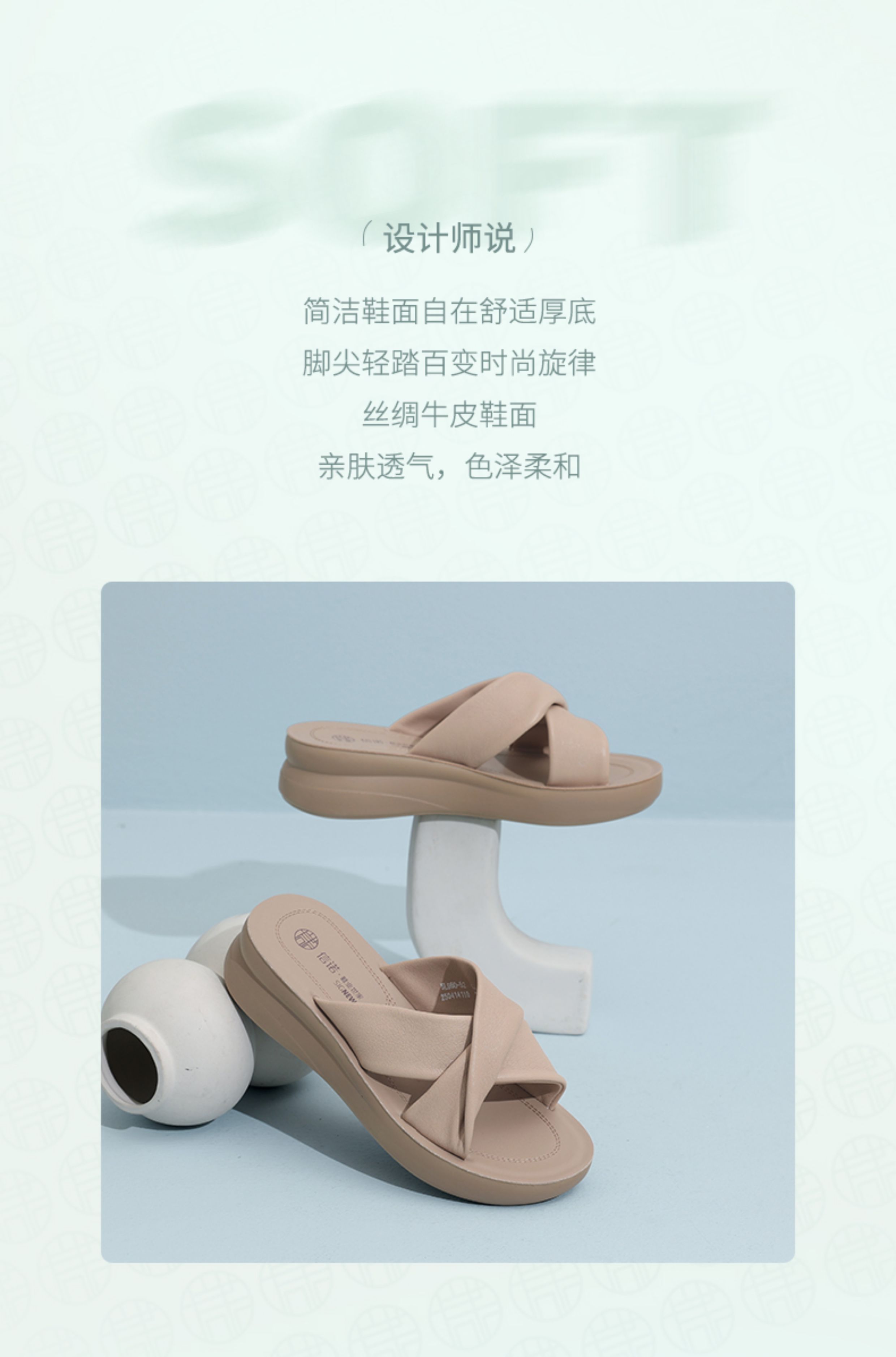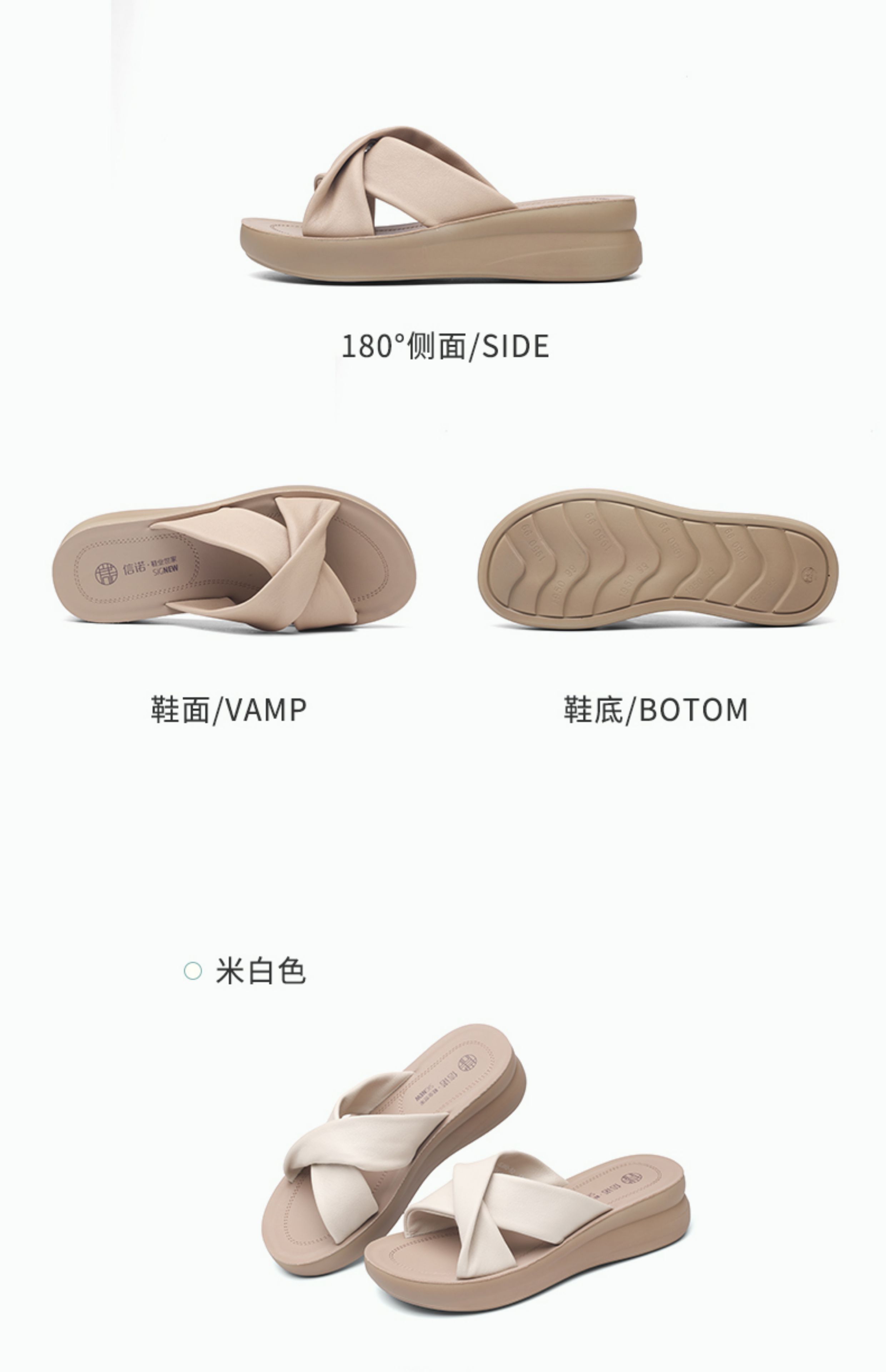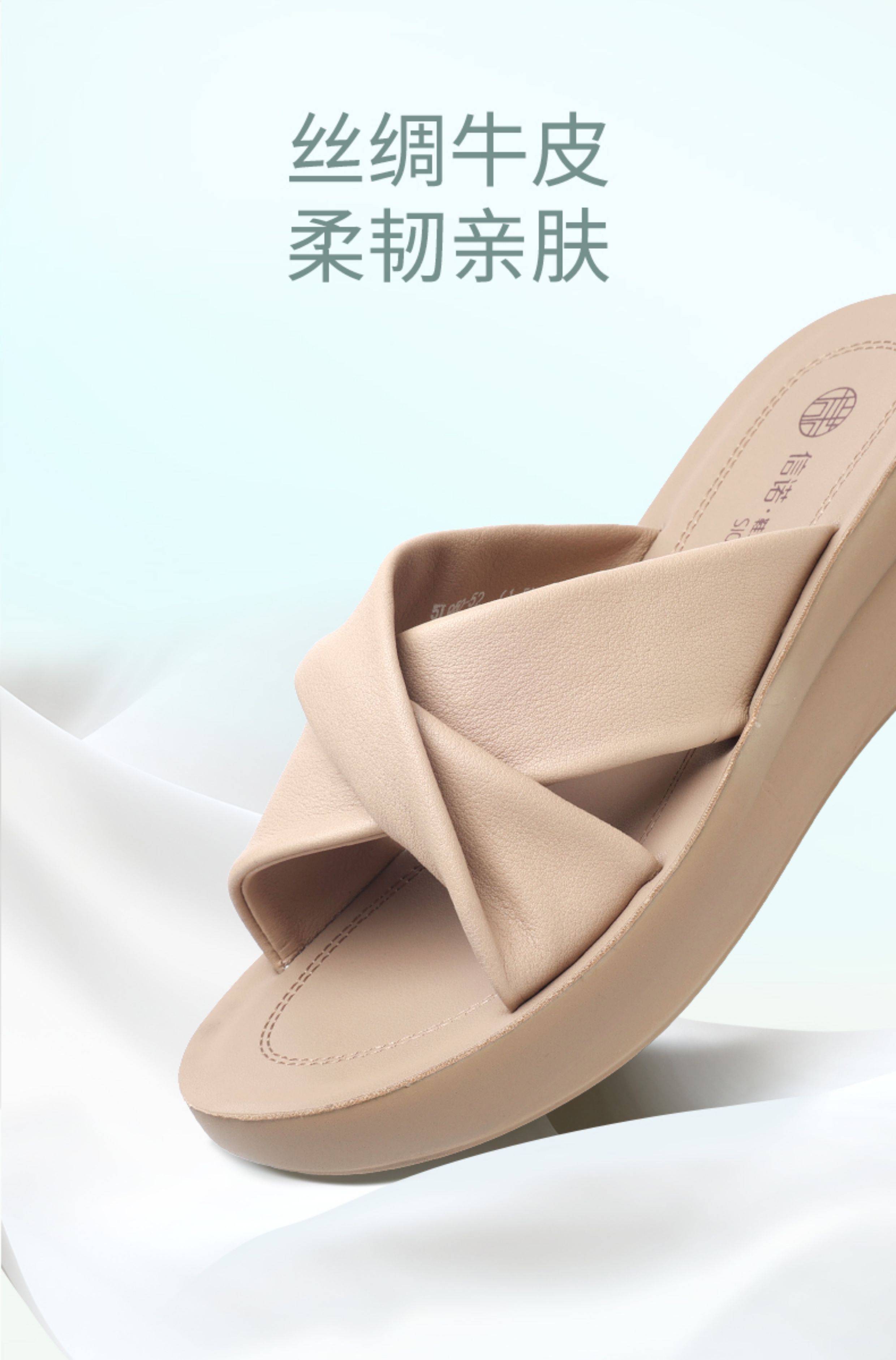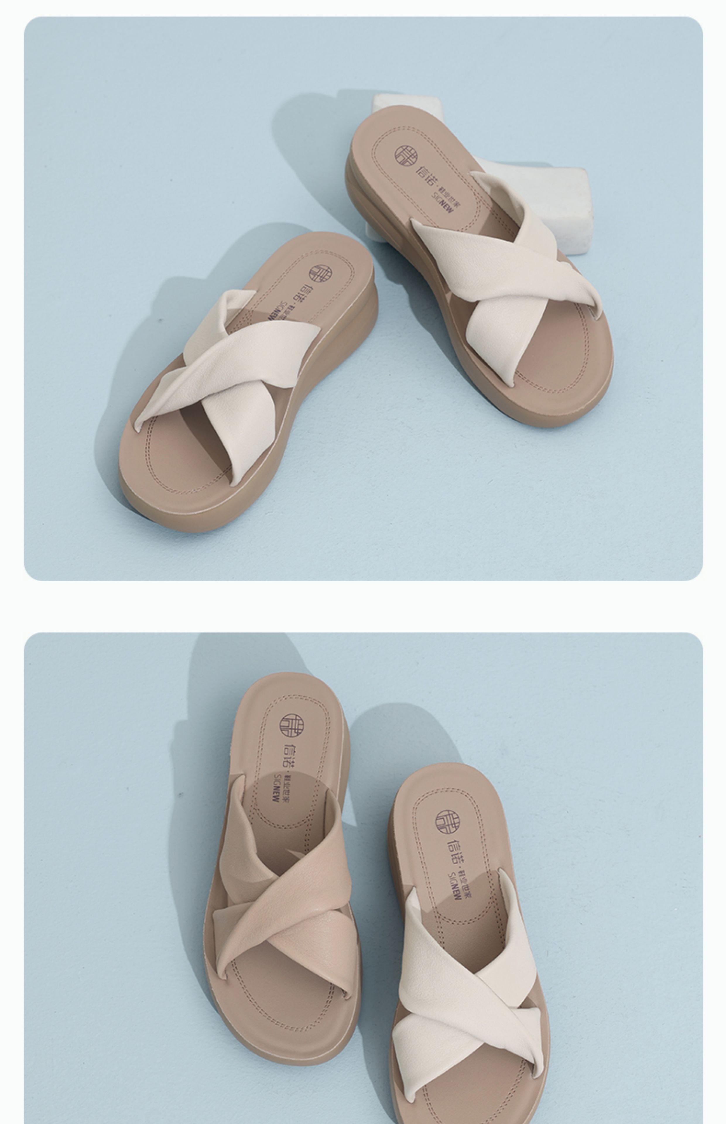 信诺真皮妈妈拖鞋2025夏季新款厚底外穿时尚一字拖舒适软底女鞋子5L950-52