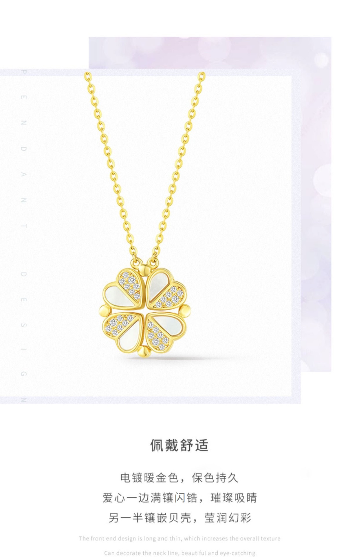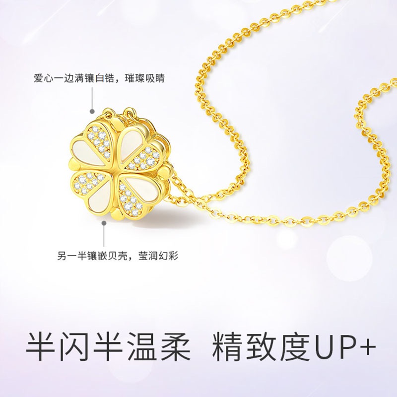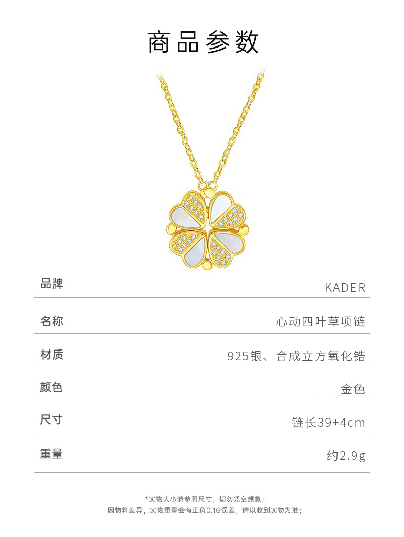 卡蒂罗/KADER 祈运四叶草项链 心动幸运草纯银镶嵌闪锆通勤百搭小众设计可拆爱心锁骨链 贝壳心形链一款两戴#好运