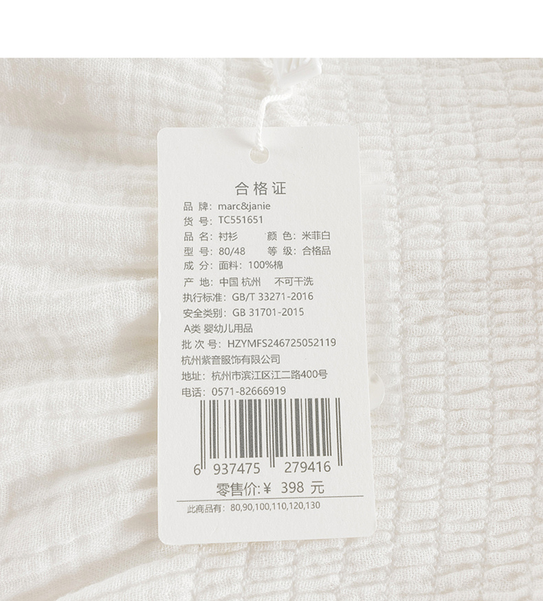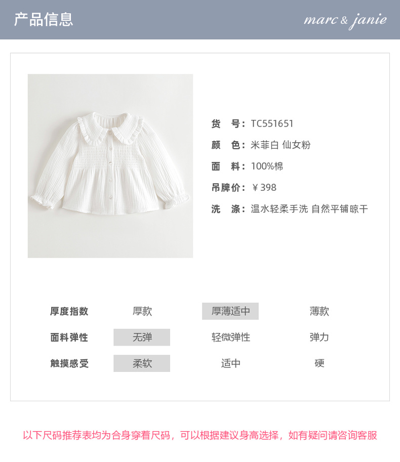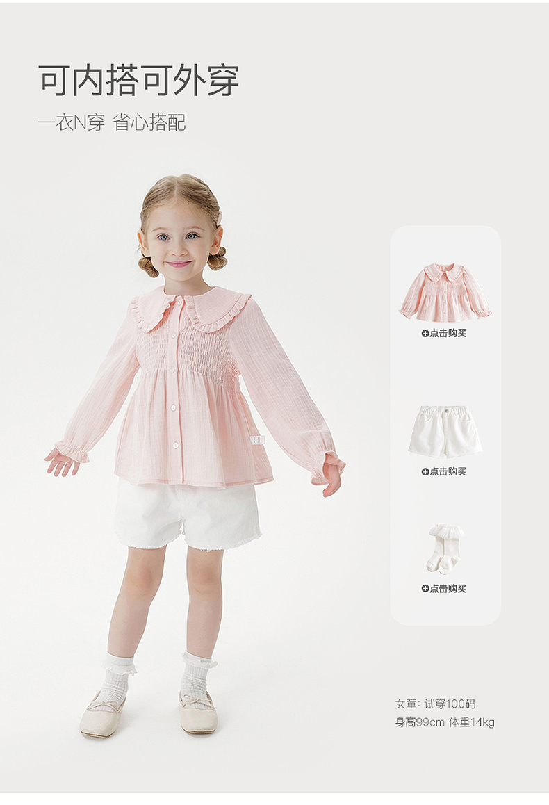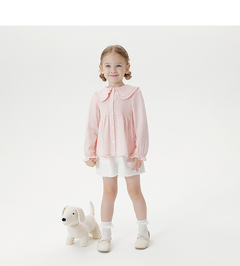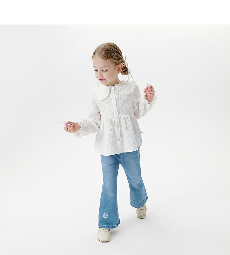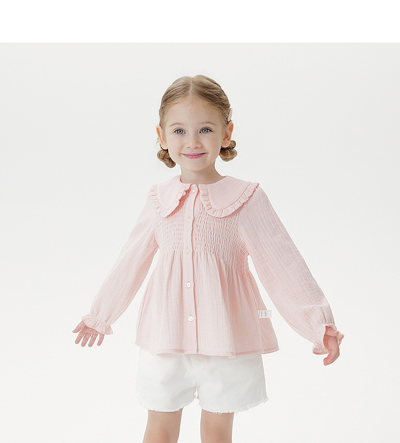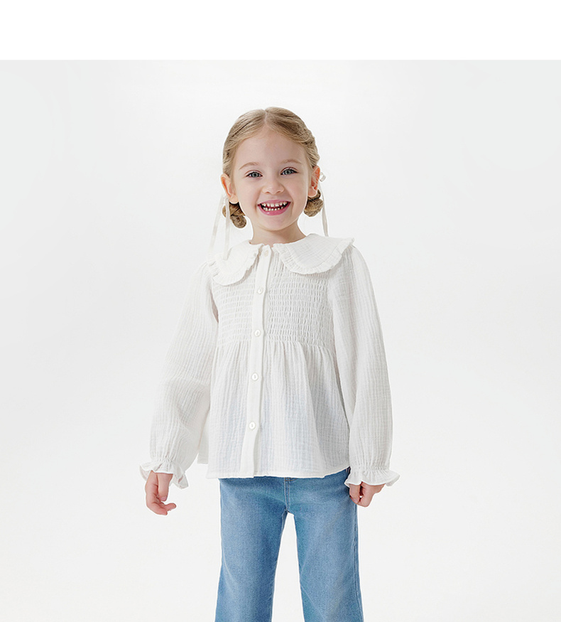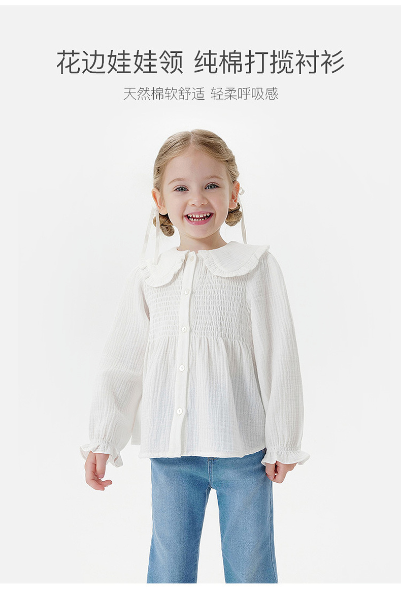 马克珍妮女童甜美娃娃领衬衫 宝宝纯棉衬衣2025年秋装新款551651
