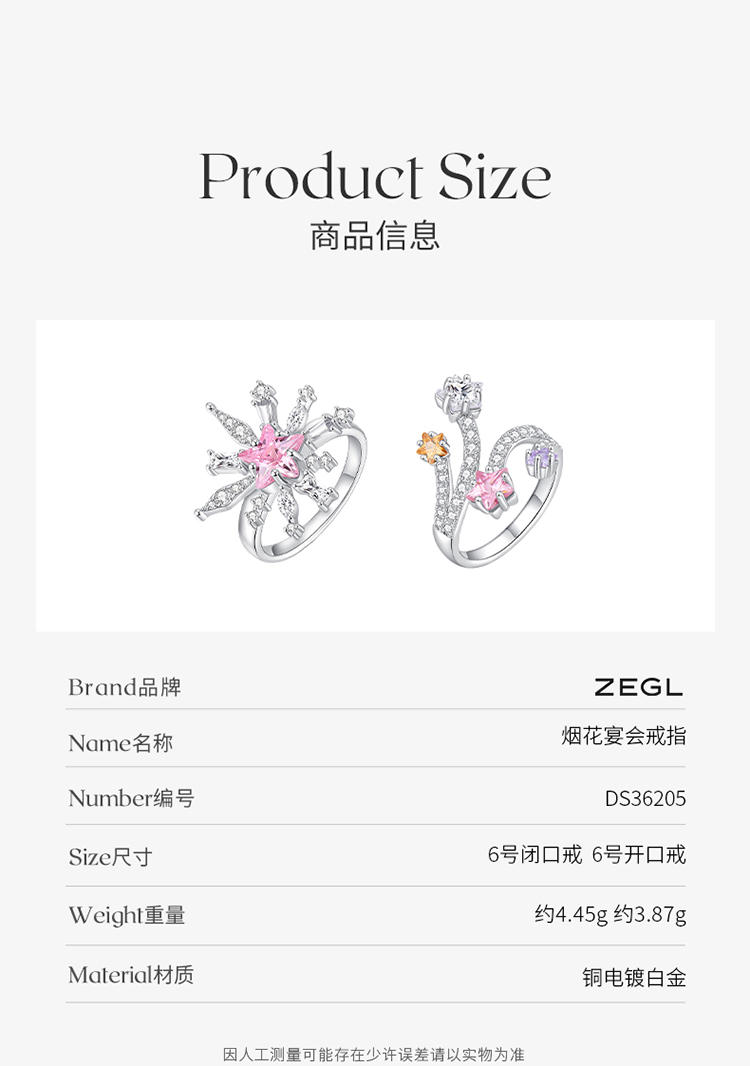 ZEGL设计师宴会系列烟花戒指小众设计高级感2022年新款潮食指戒子