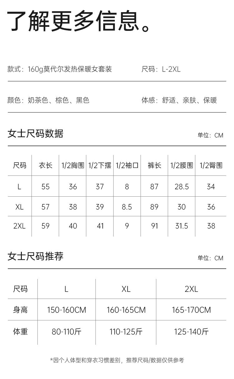 美奈川 莫代尔发热保暖女套装(160G ) BN-W09182