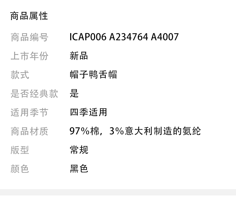 VERSACE 范思哲 男女通用棉质金色徽标图案运动棒球帽鸭舌帽 黑色 ICAP006 A234764 A4007