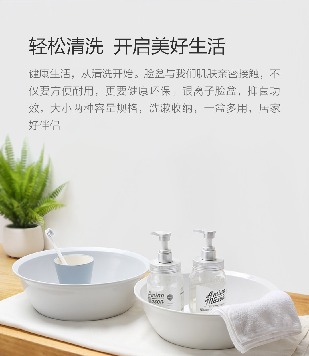小米有品 全格银离子脸盆大小号洗漱盆洗菜盆面盆洗衣水盆
