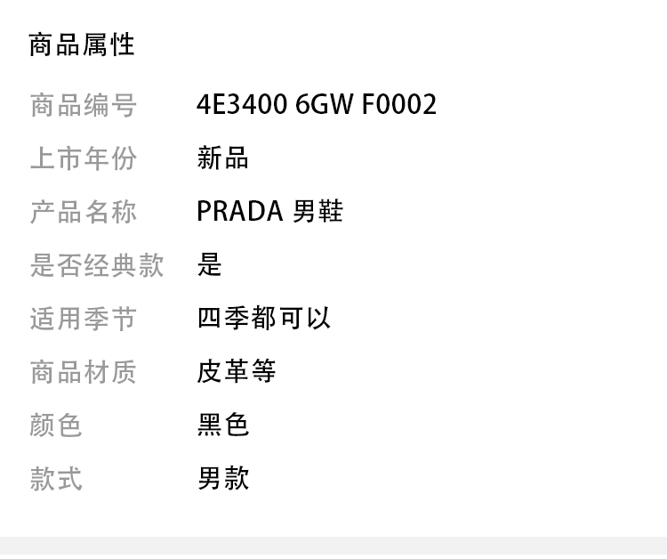 【一】PRADA 普拉达 男士休闲鞋 黑色 4E3400 6GW F0002