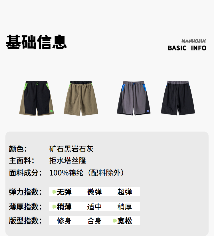 漫画家【AB拼图裤】轻量快干防泼水AB面拼接撞色工装短裤夏