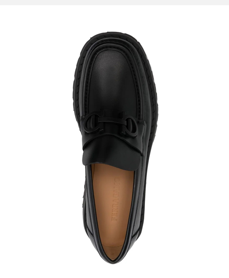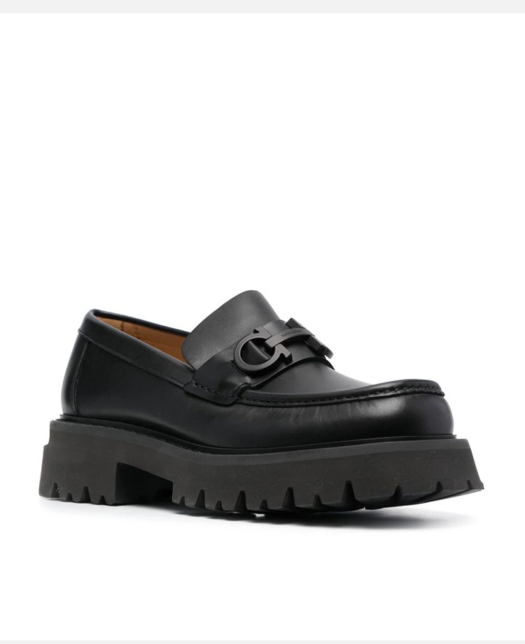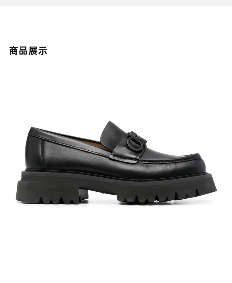 【一】FERRAGAMO 菲拉格慕 男士字母徽标厚底乐福鞋 黑色 762676