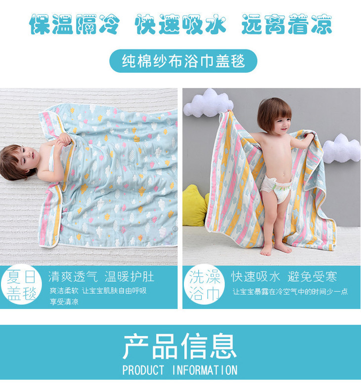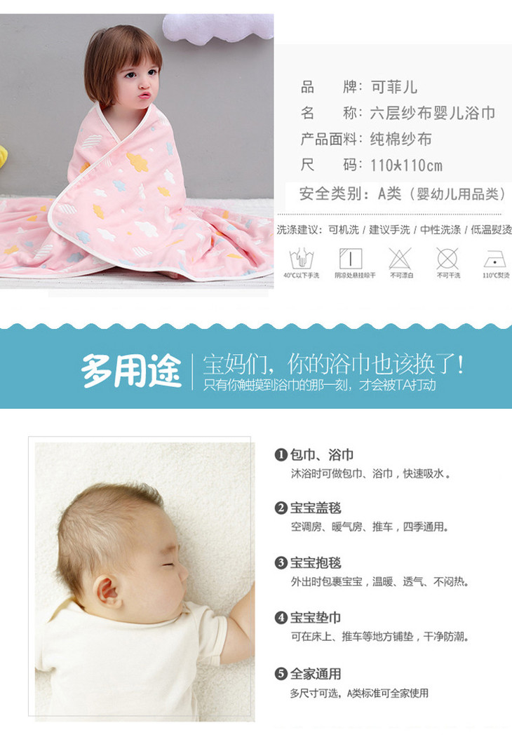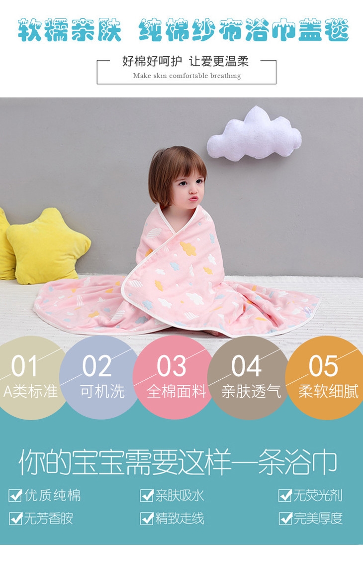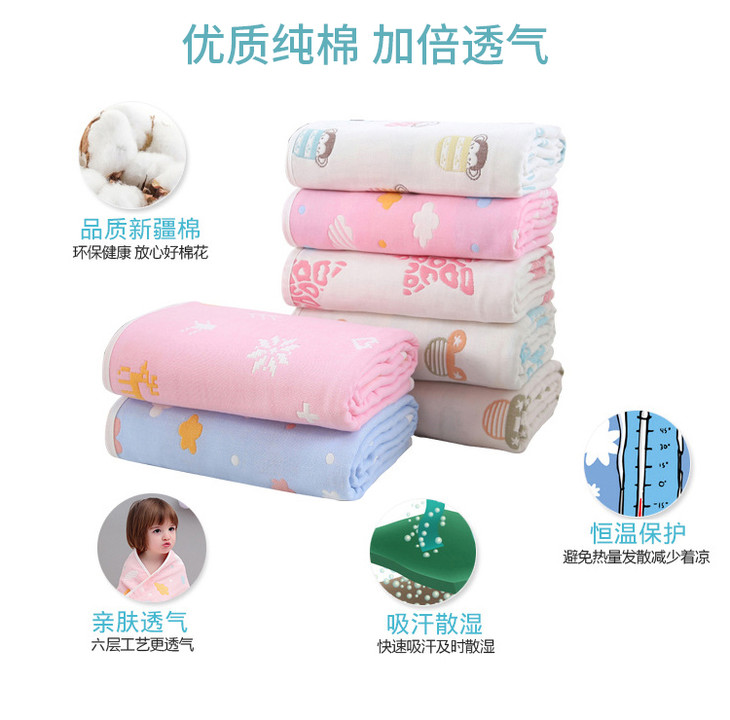 六层纱布浴巾儿童毛巾被纯棉纱布毛巾A类婴儿盖毯