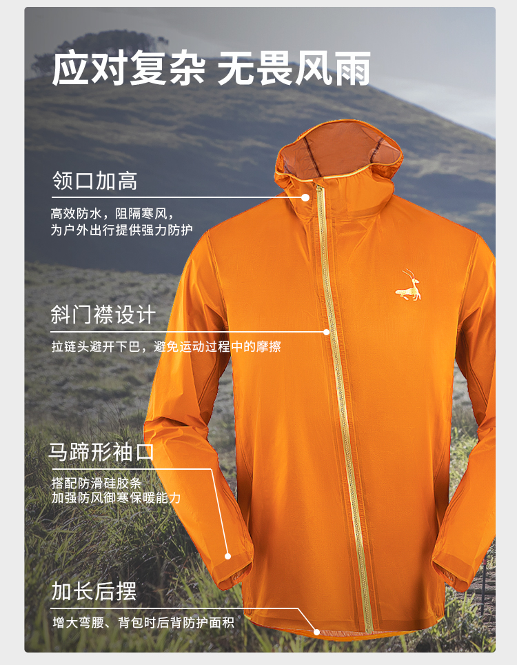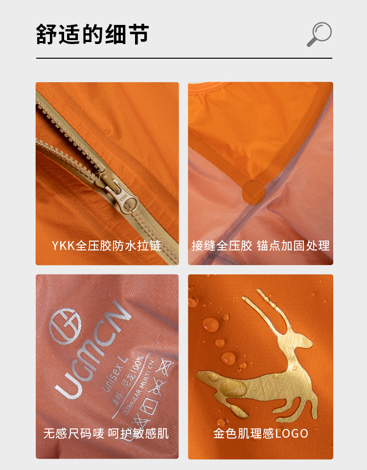 优极UG ELITE男女款斜开拉链轻量冲锋衣