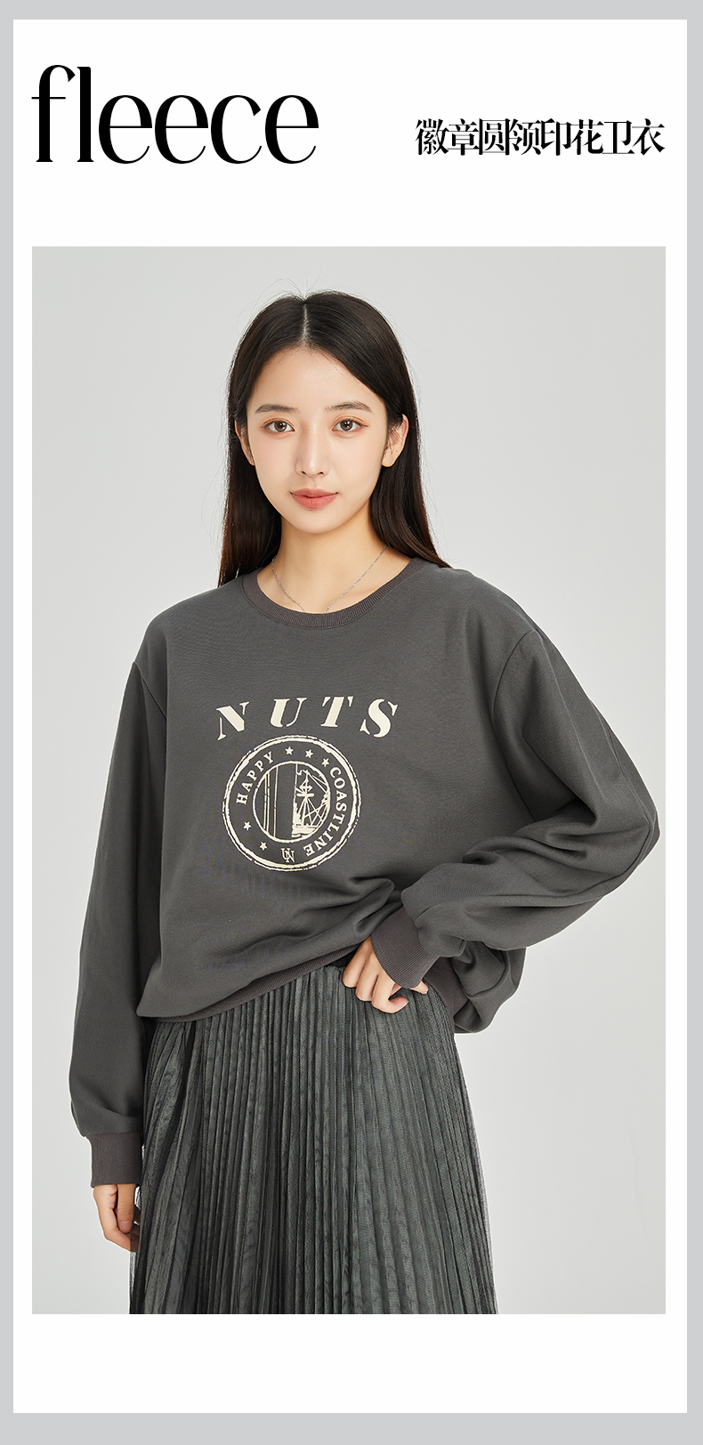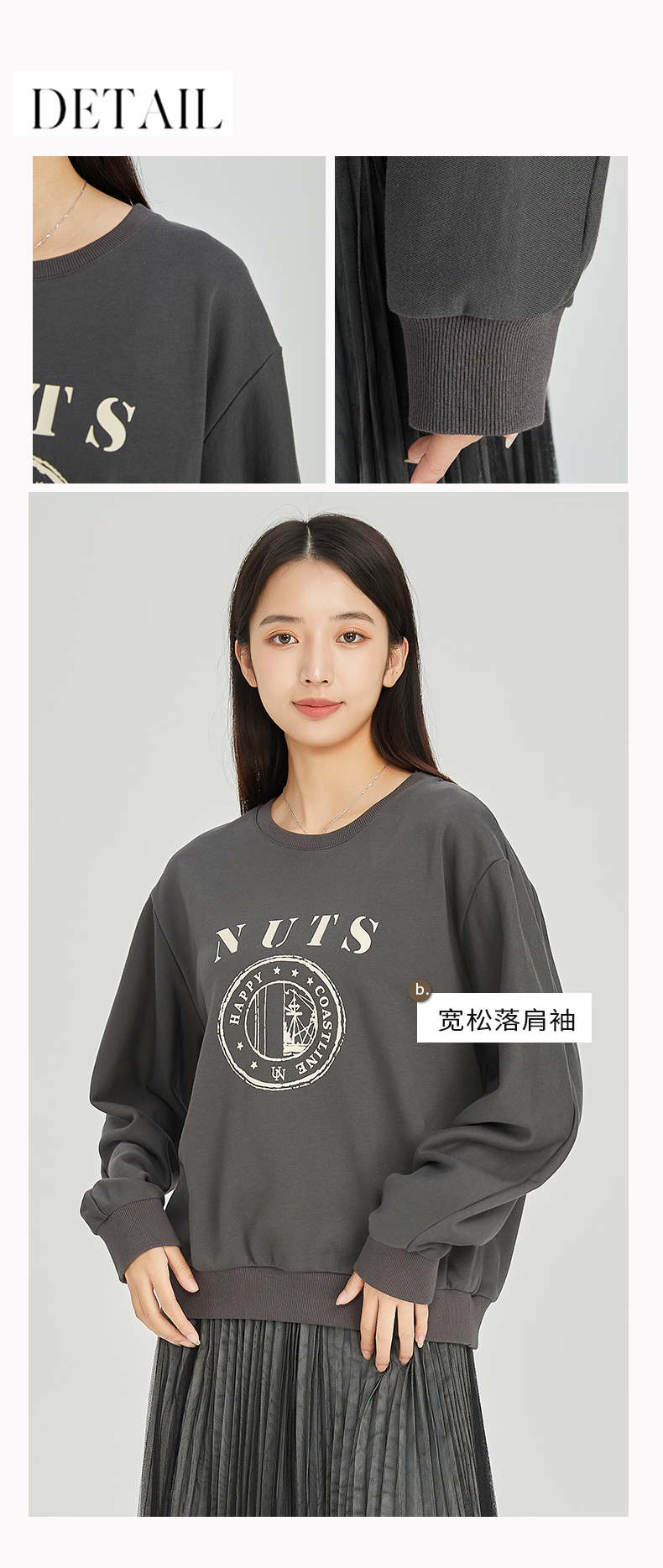 NUTS商场同款春秋款圆领时尚气质长袖T恤女314023199B