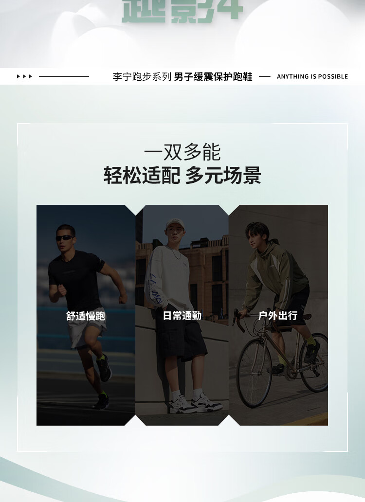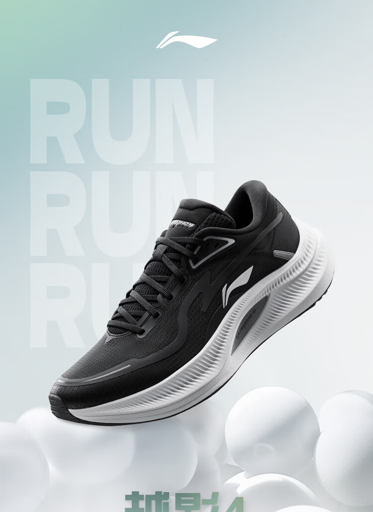 李宁越影4丨反光轻质缓震保护跑鞋男子25新品柔软舒适鞋子ARHV001