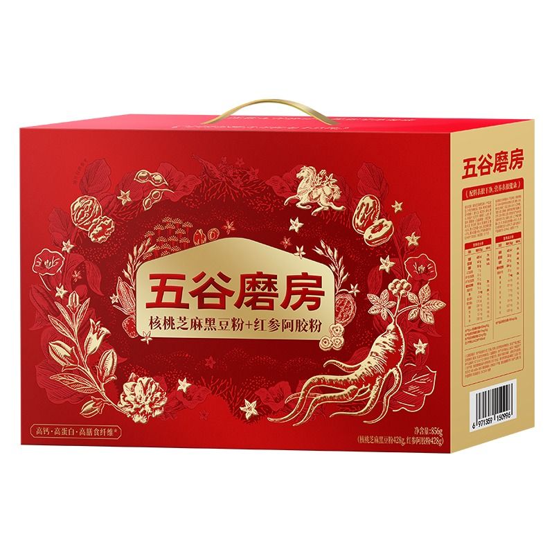 五谷磨房 食养礼核桃芝麻黑豆粉+红参阿胶粉 856g(428g*2罐)/盒