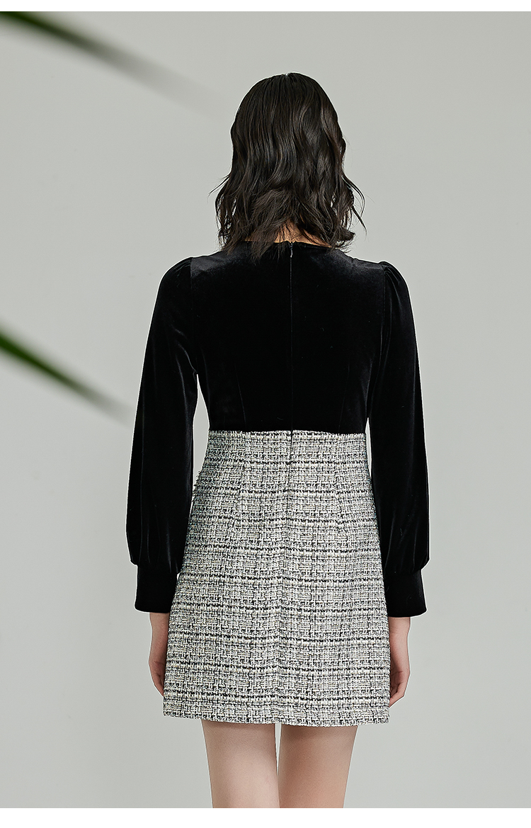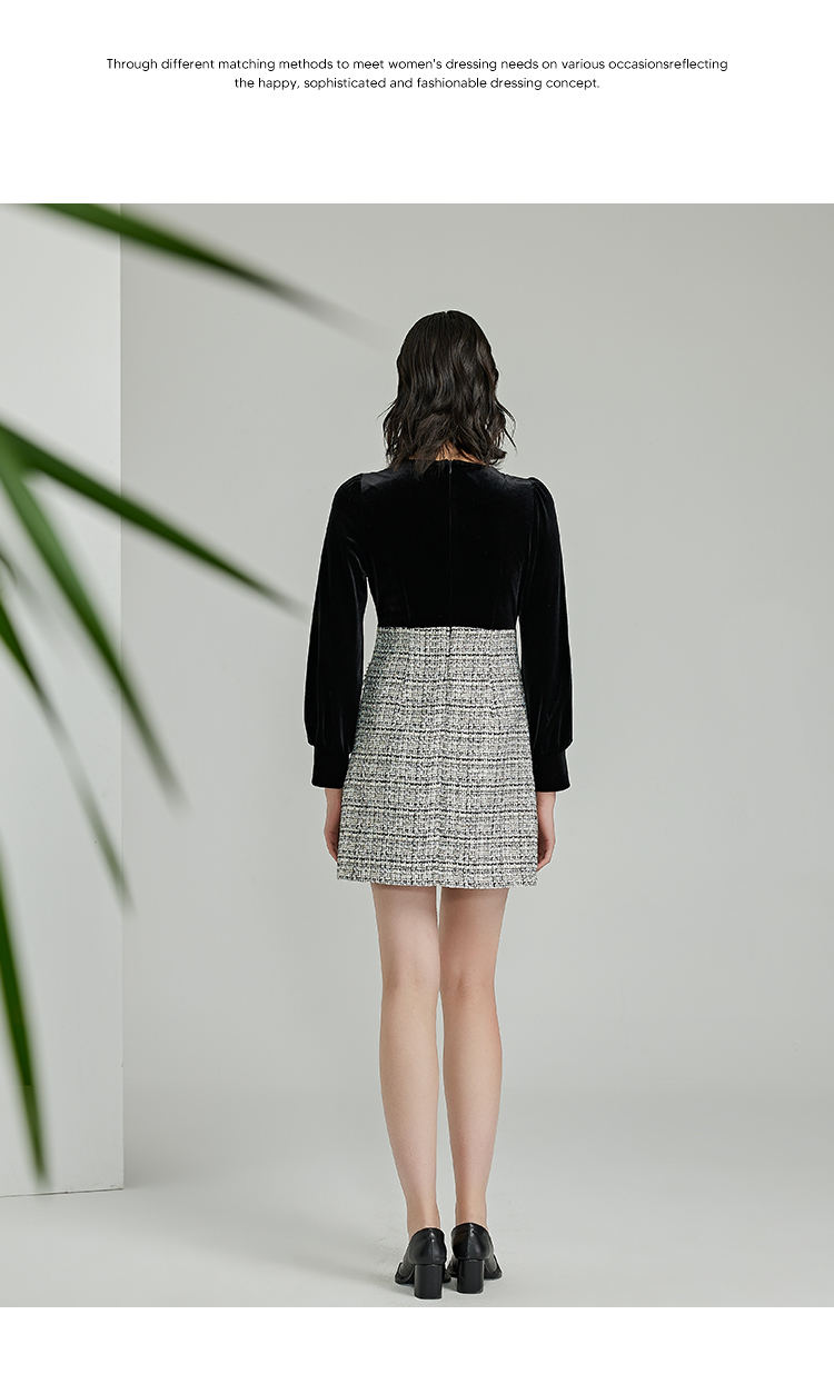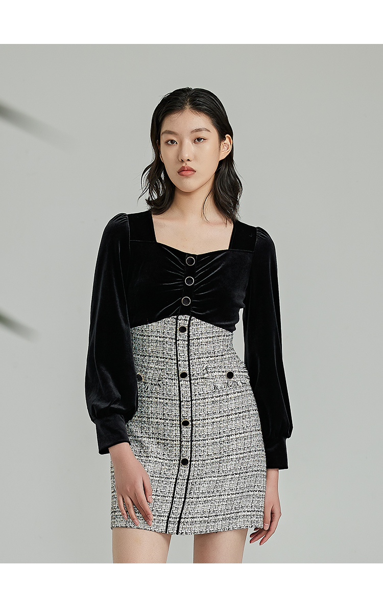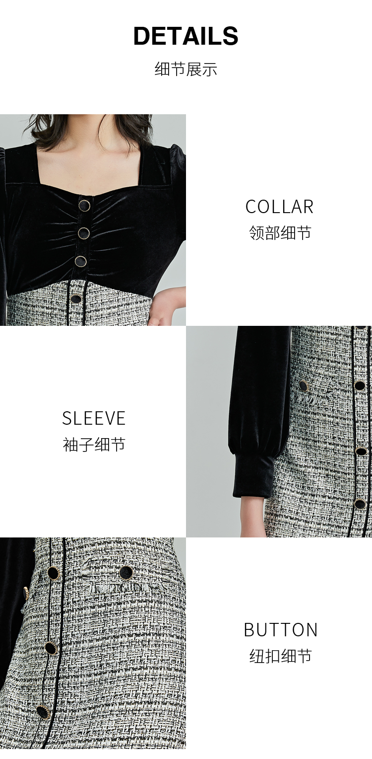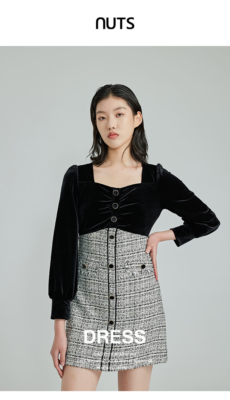 NUTS春季新品时尚方领气质百搭优雅长袖连衣裙312103068B