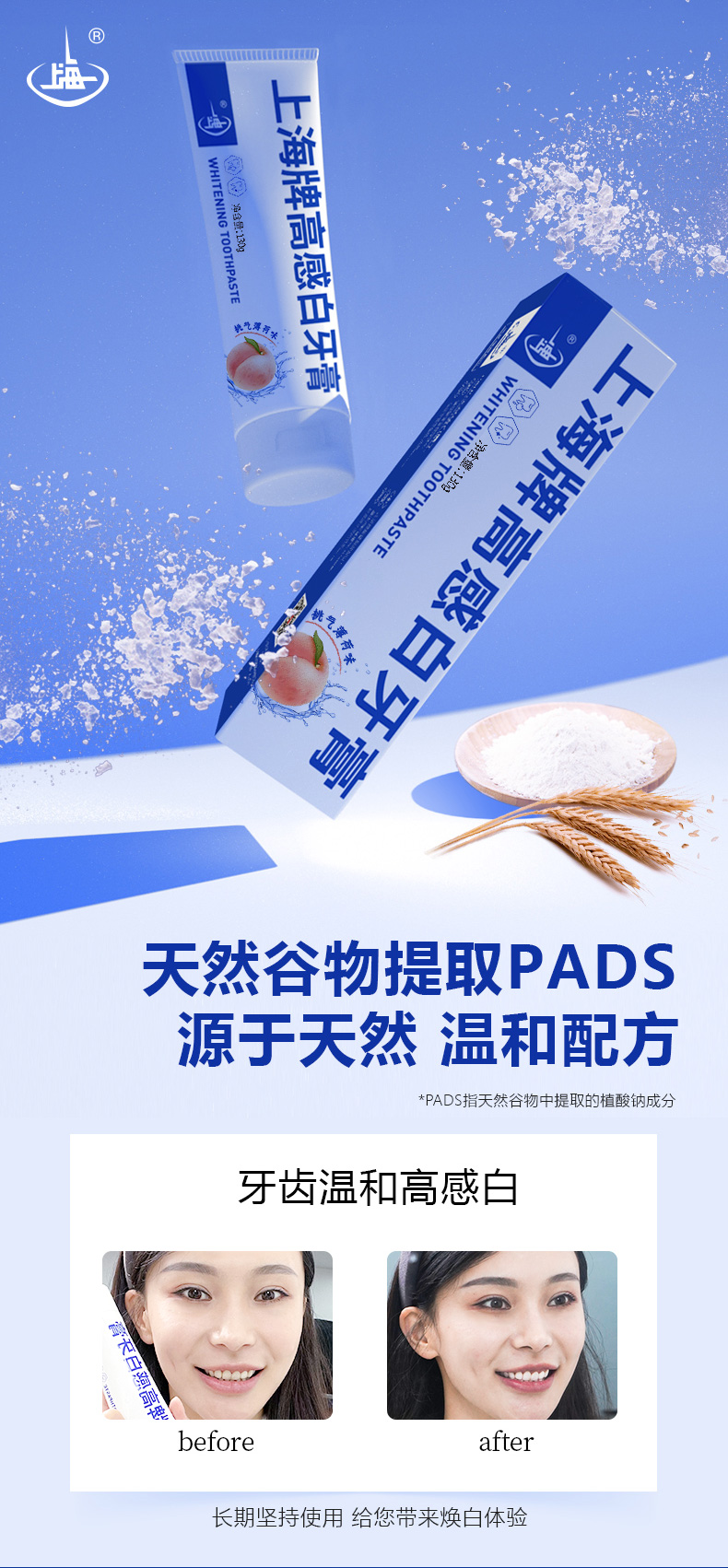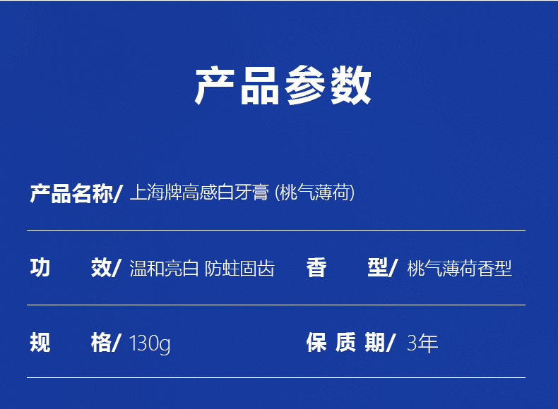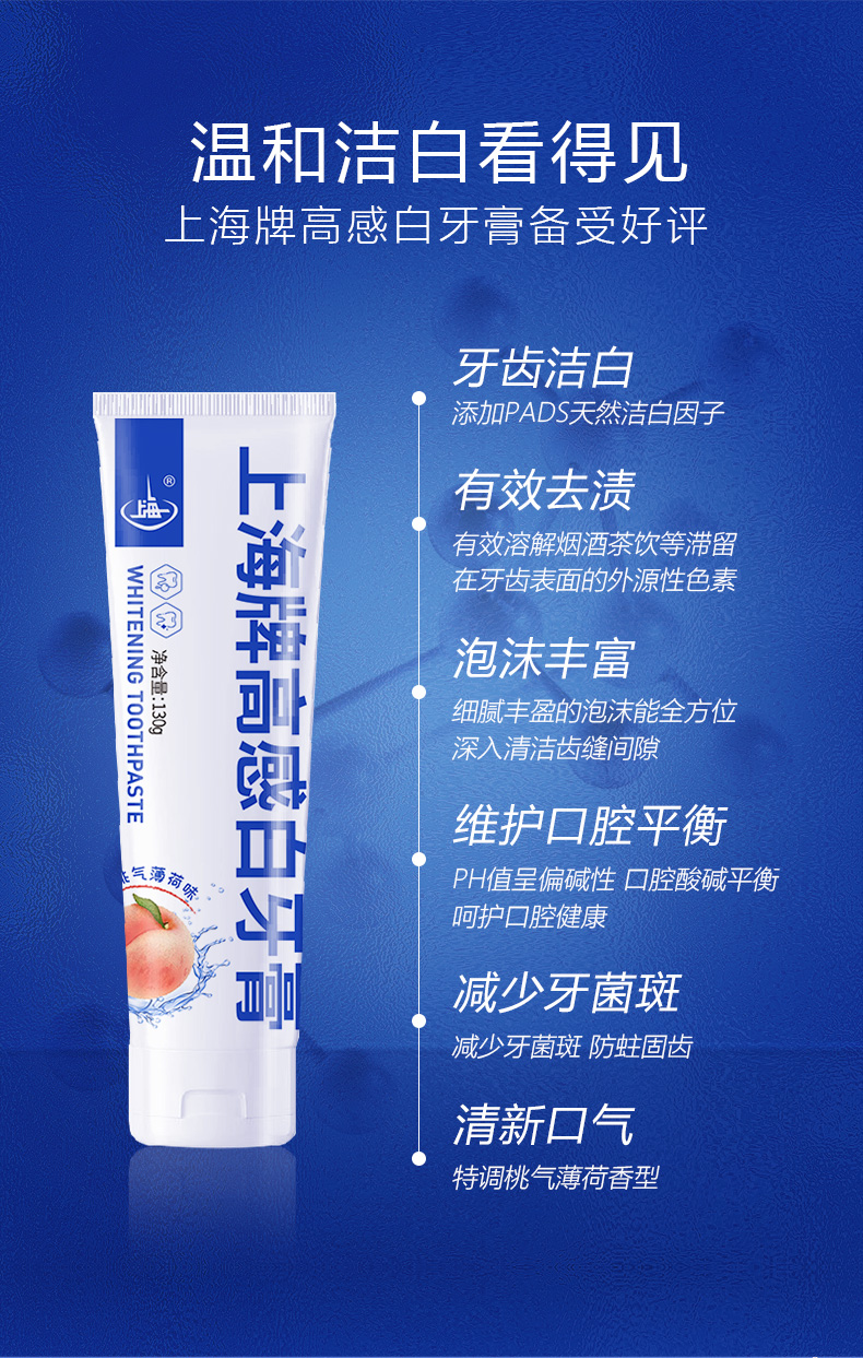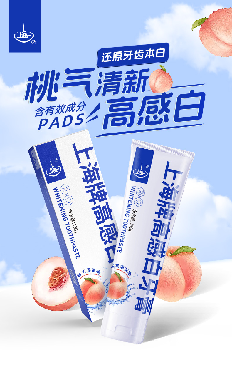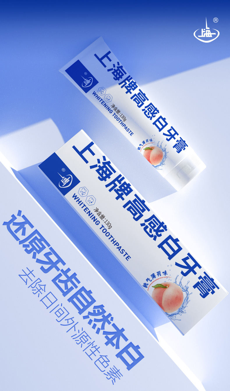 上海高感白桃气薄荷牙膏130g牙齿去渍还原牙本白蜜桃香型