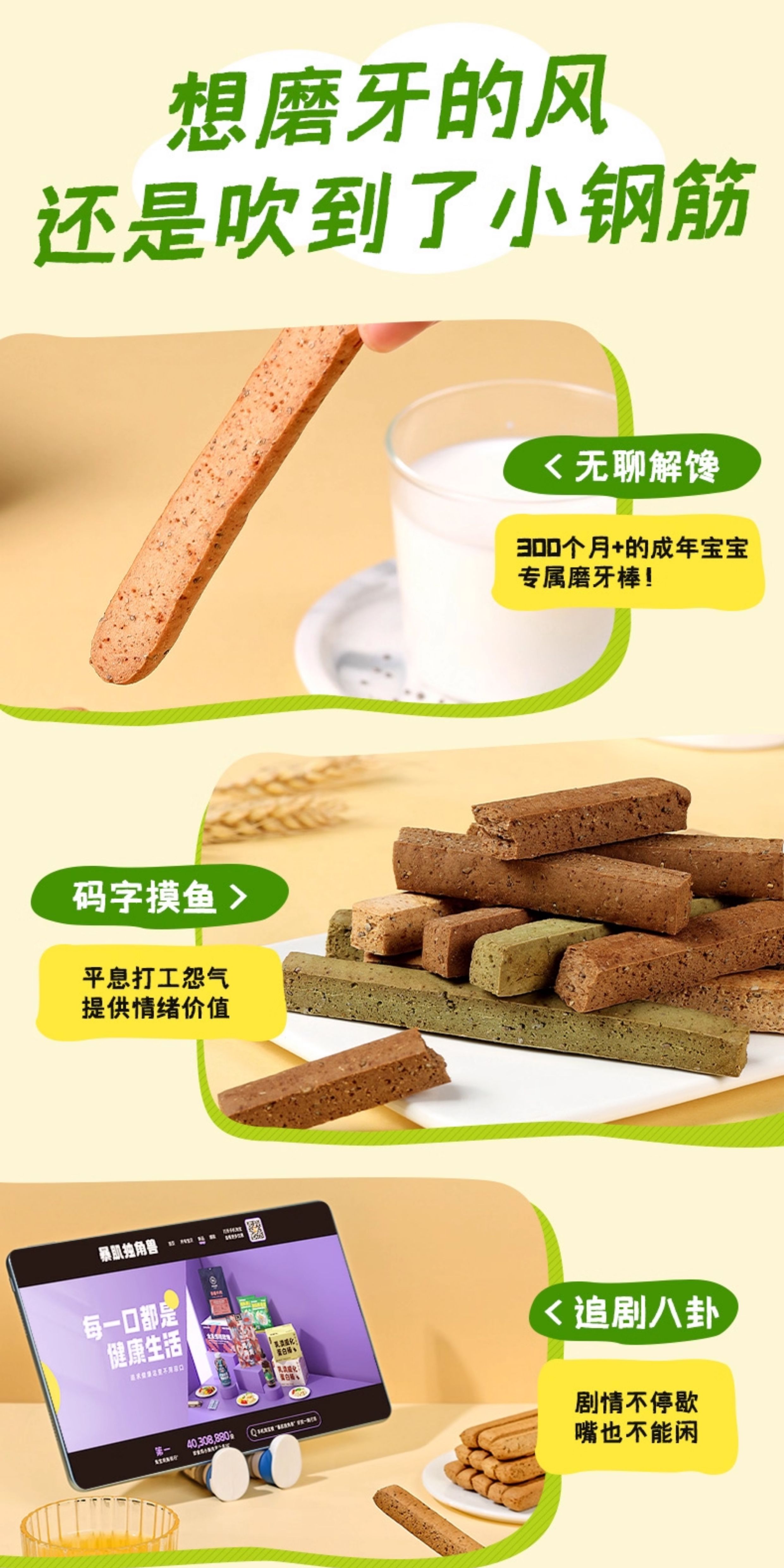 【买2盒送下午茶饮品】小钢筋磨牙棒饼干全麦棒零食品