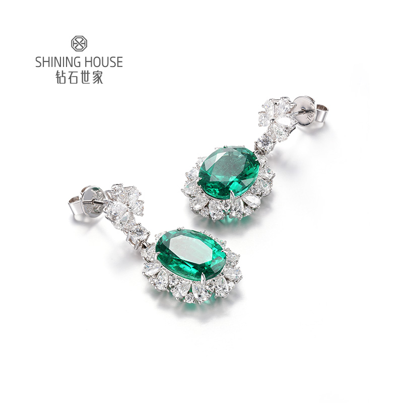 【祖母绿耳饰】钻石世家 18K金祖母绿镶钻耳饰 高级设计珠宝系列 祖母绿 拥有美丽的翠绿色 象征着幸运、幸福和万物盎然的生命力