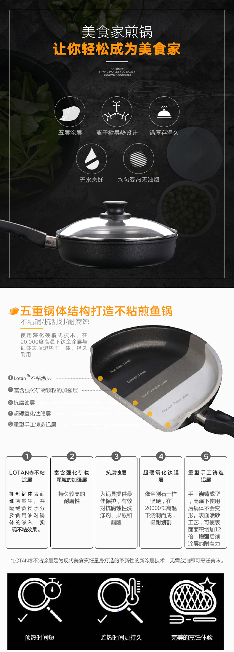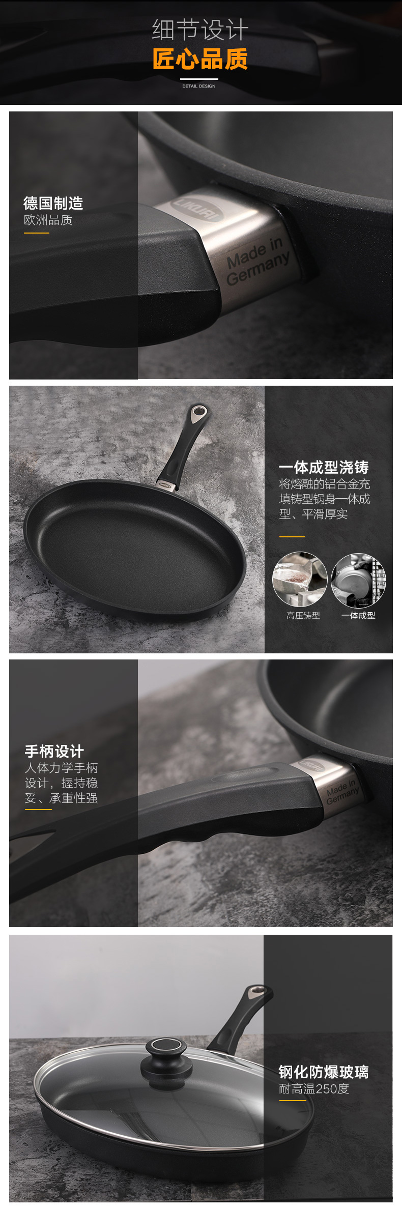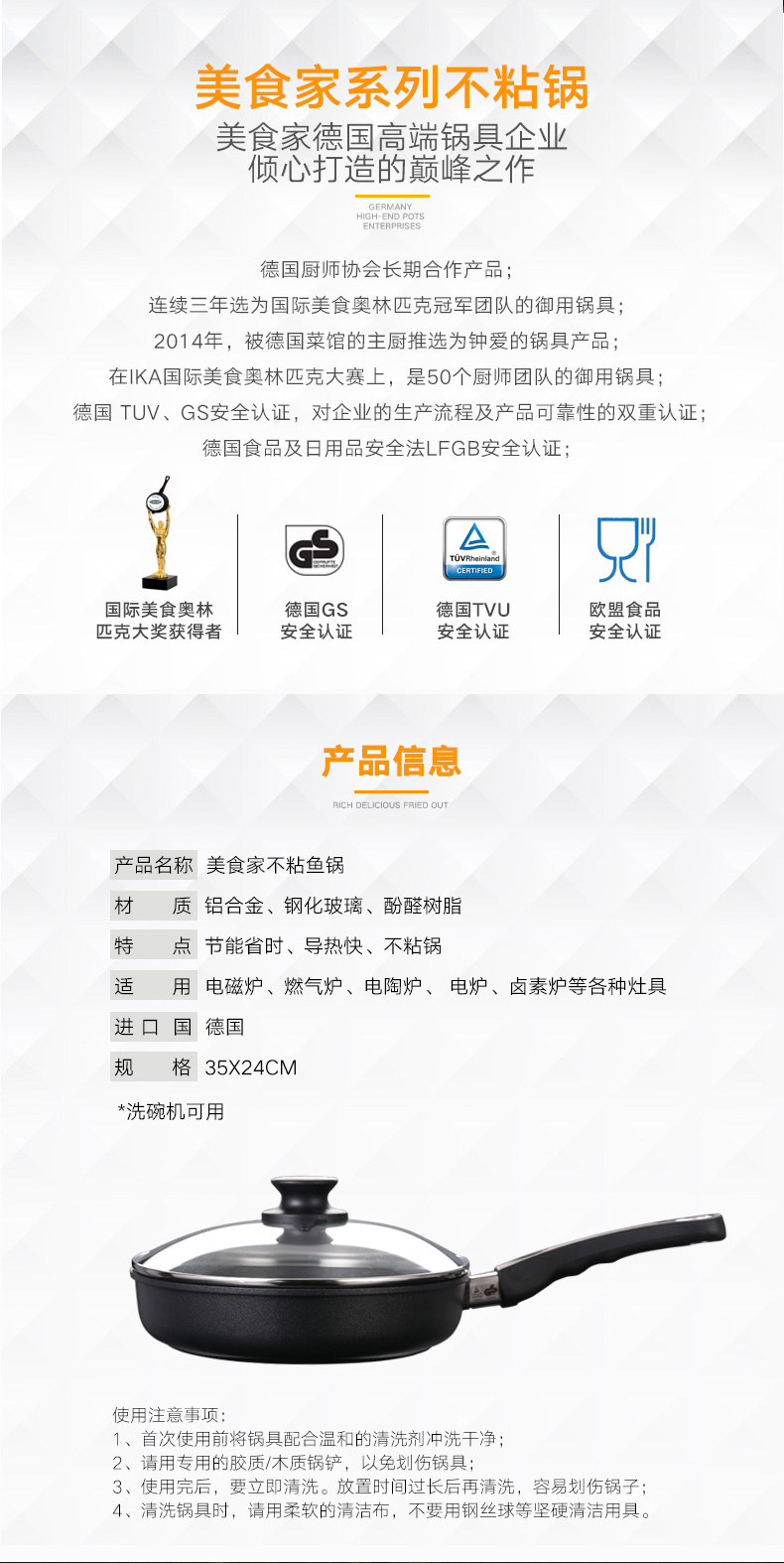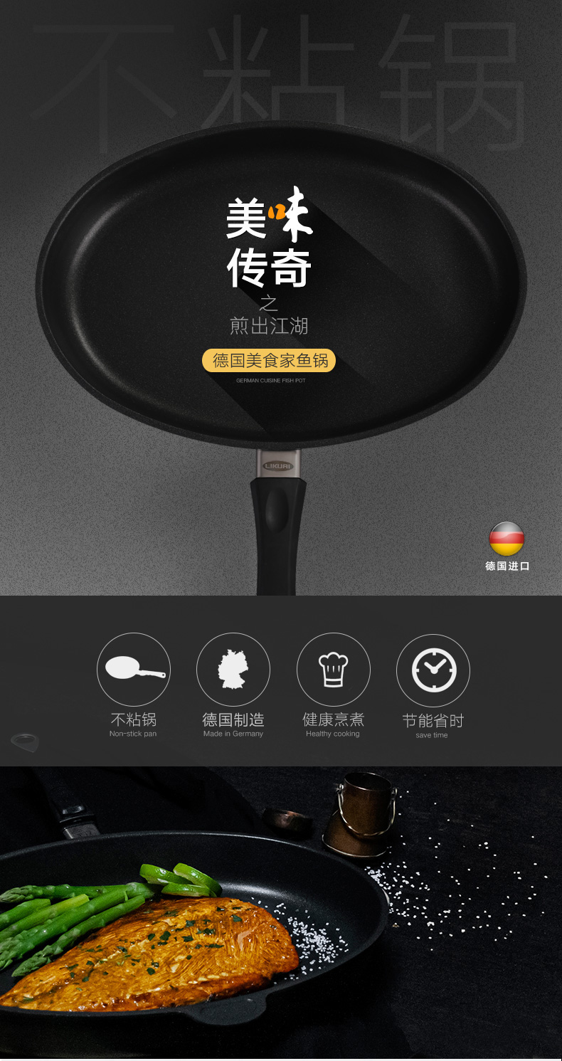 利快德国进口美食家不粘鱼锅铝合金欧式不粘平底锅烙饼不粘锅煎蛋