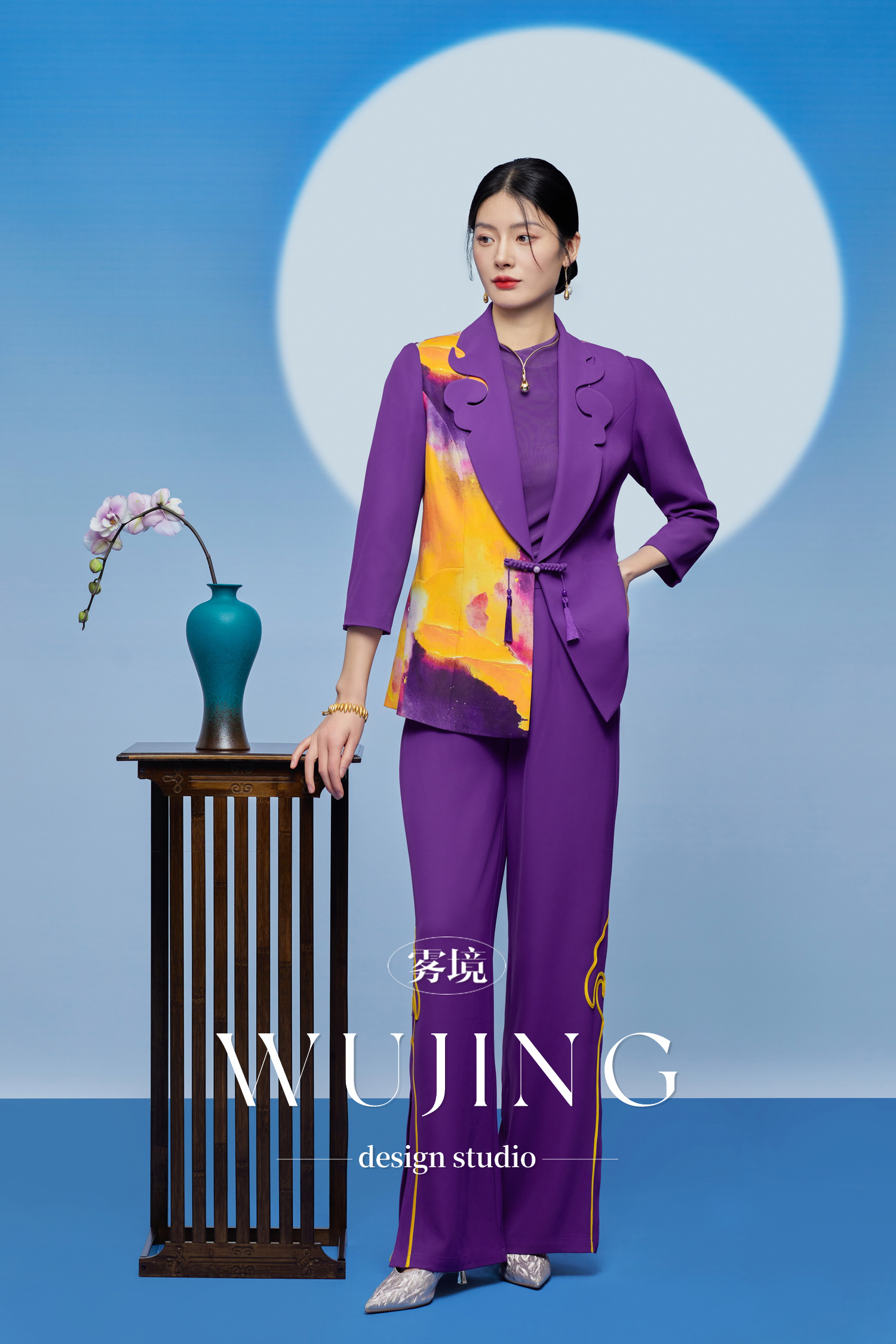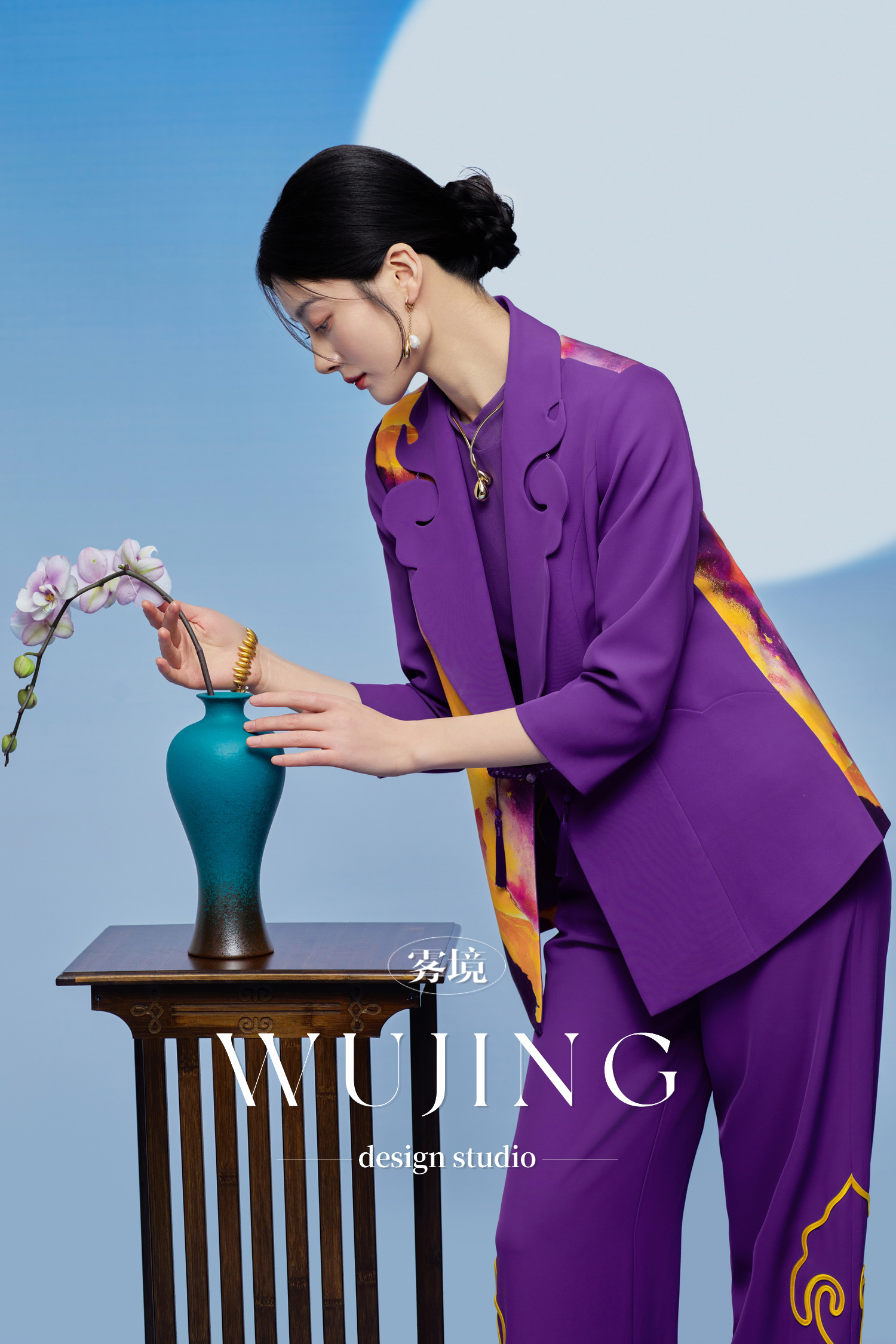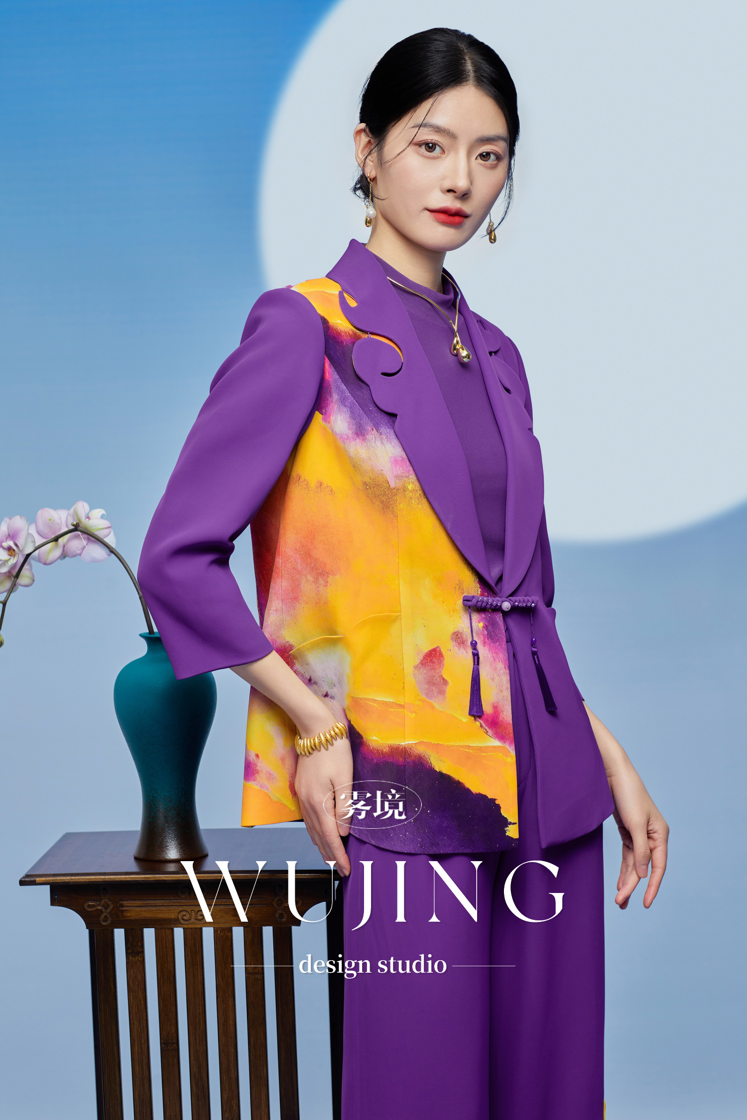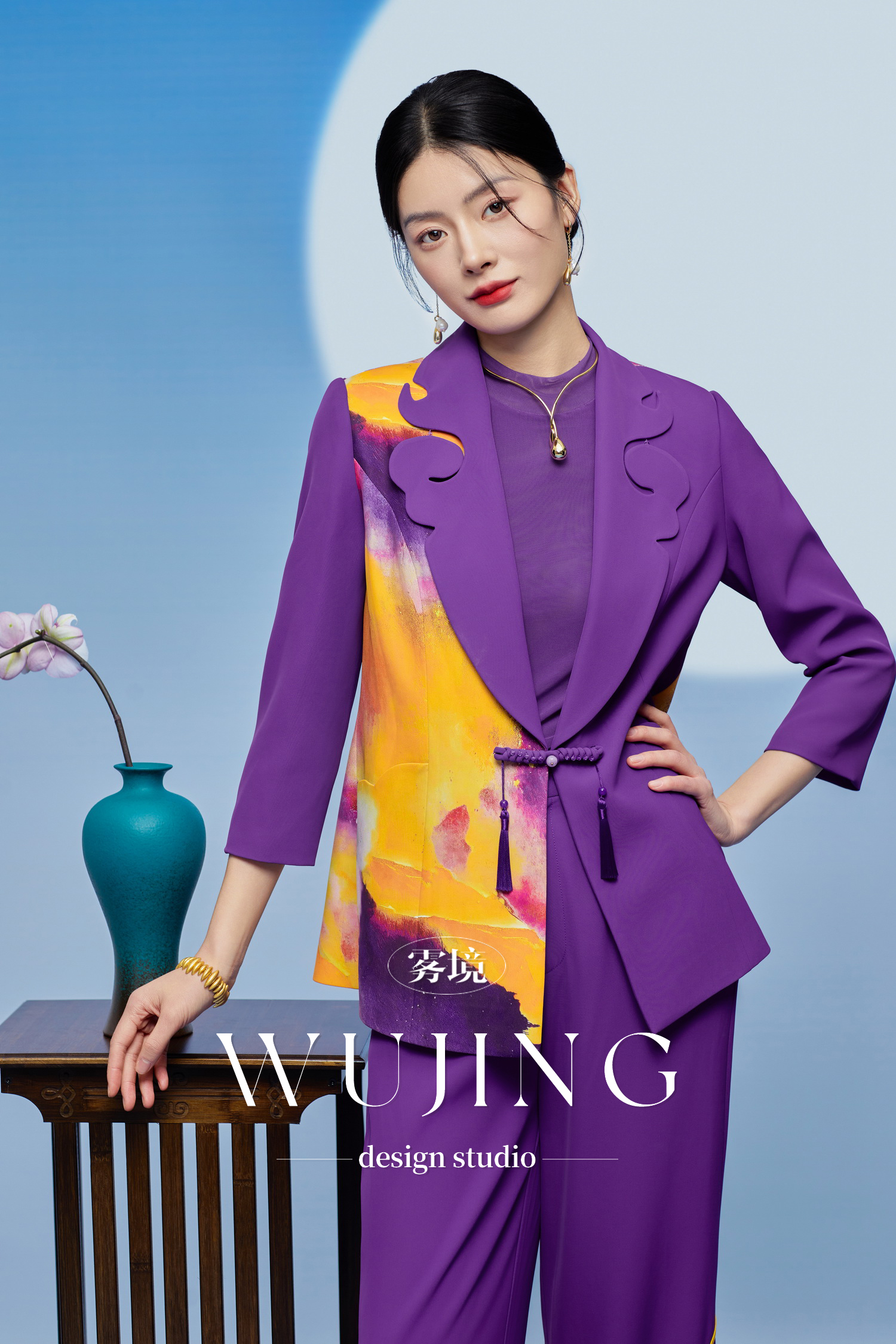 3205272 紫金梦雨 进口纹理蜂窝印花缎外套 雾境