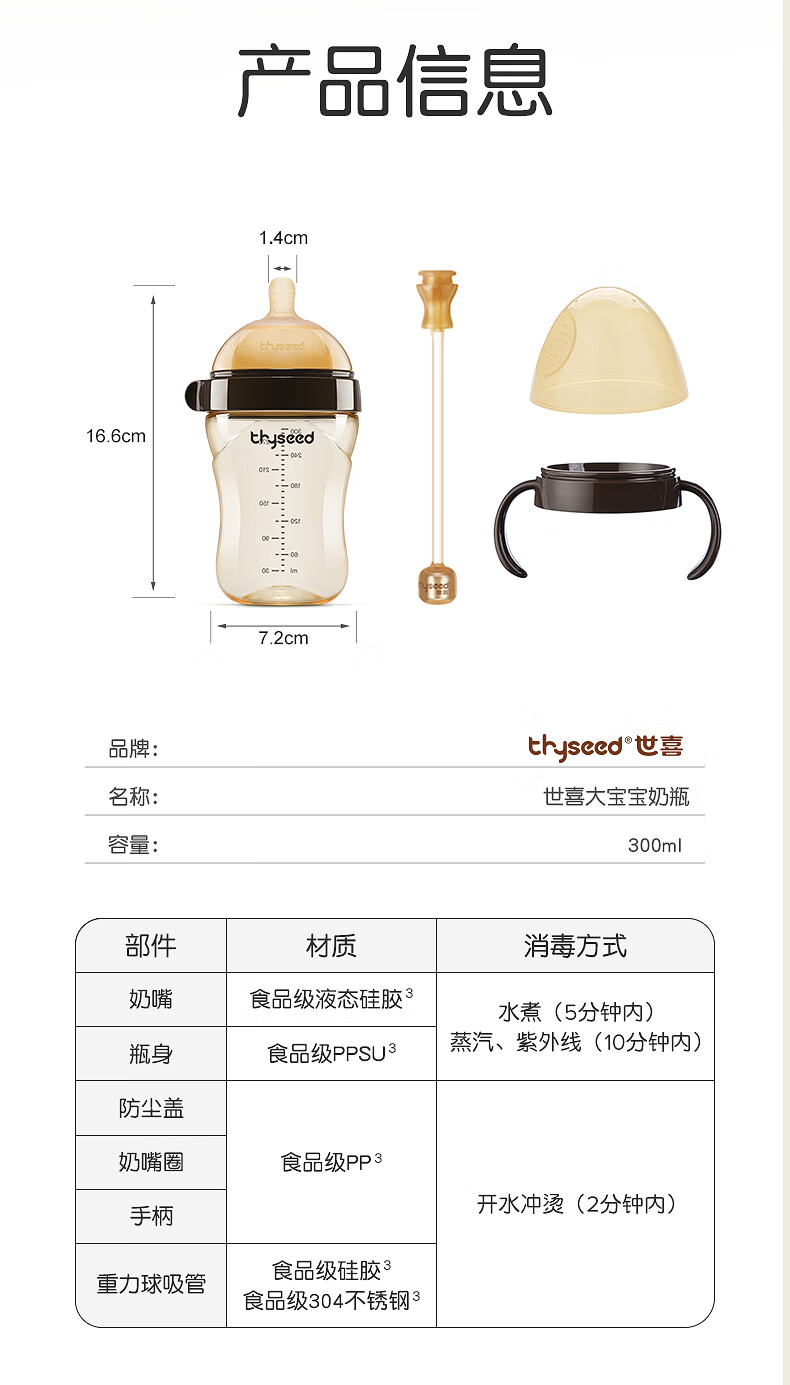 世喜大宝宝奶瓶(0-3个月)300ml不带吸管手柄