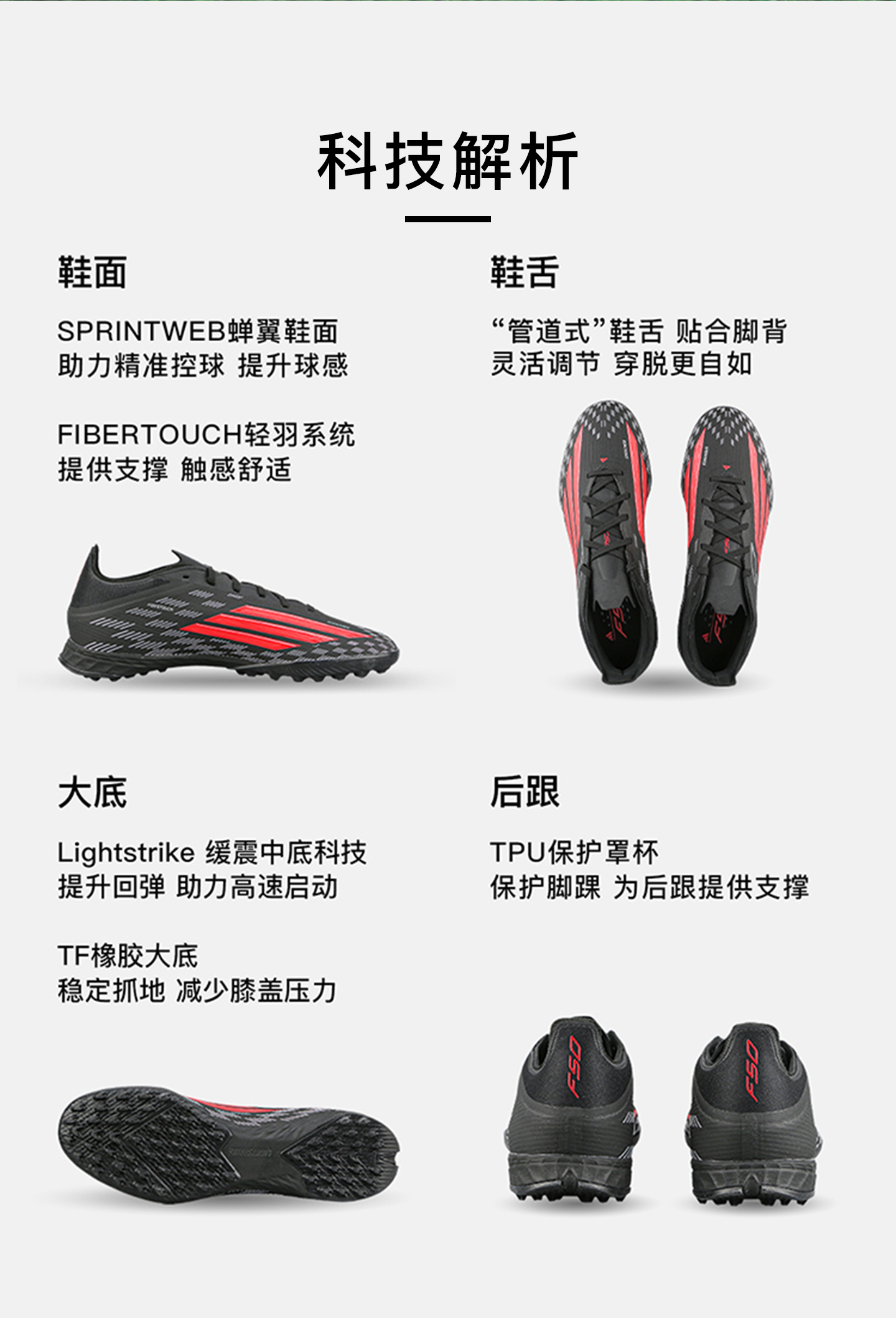 小李子ADIDAS阿迪达斯 F50 次高端TF碎钉成人训练足球鞋男JR8941