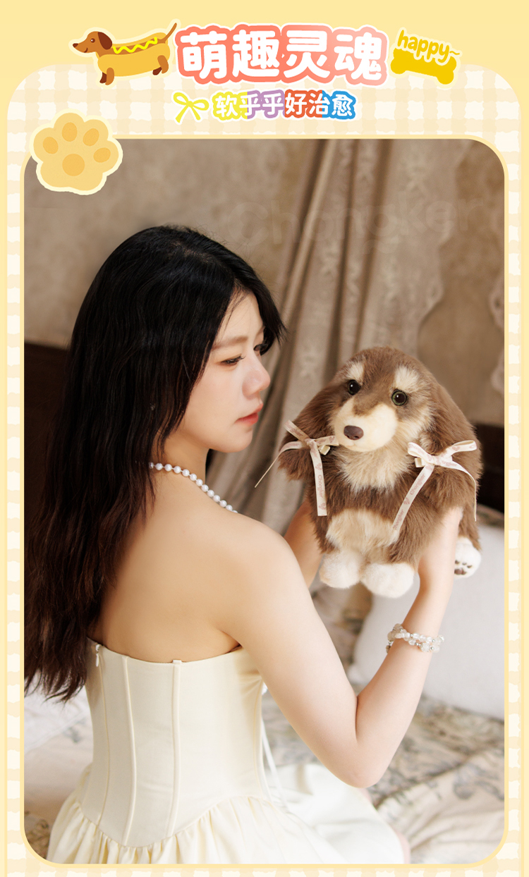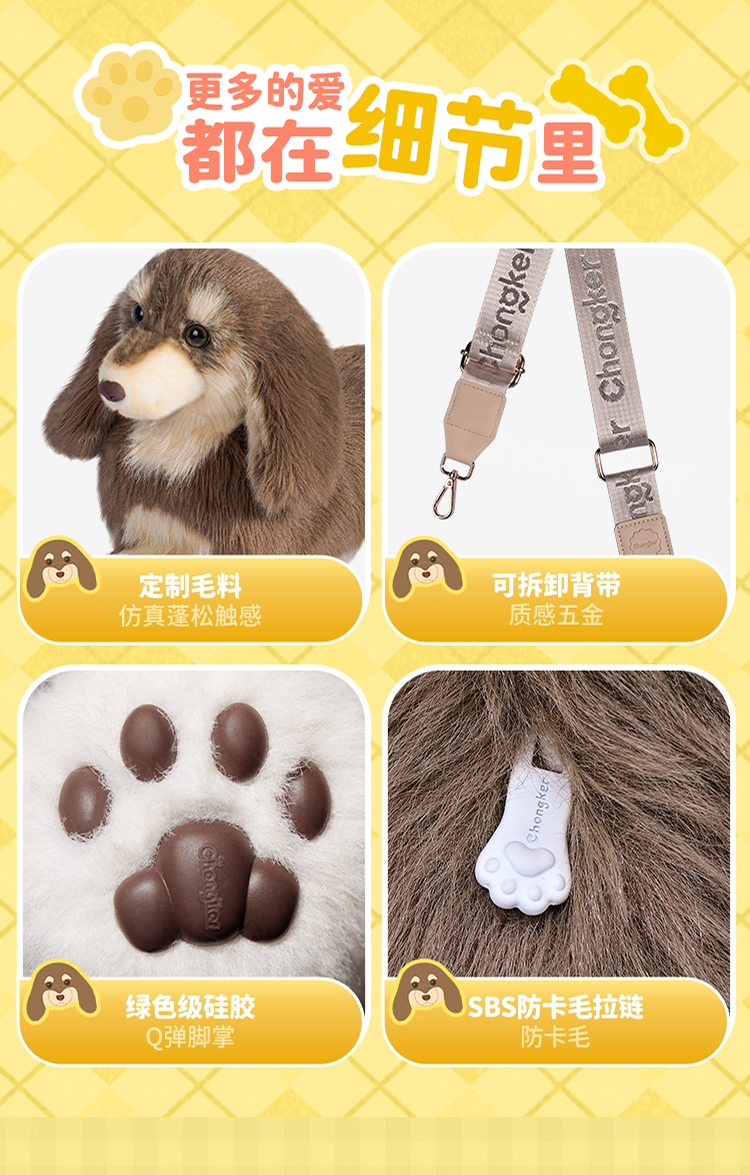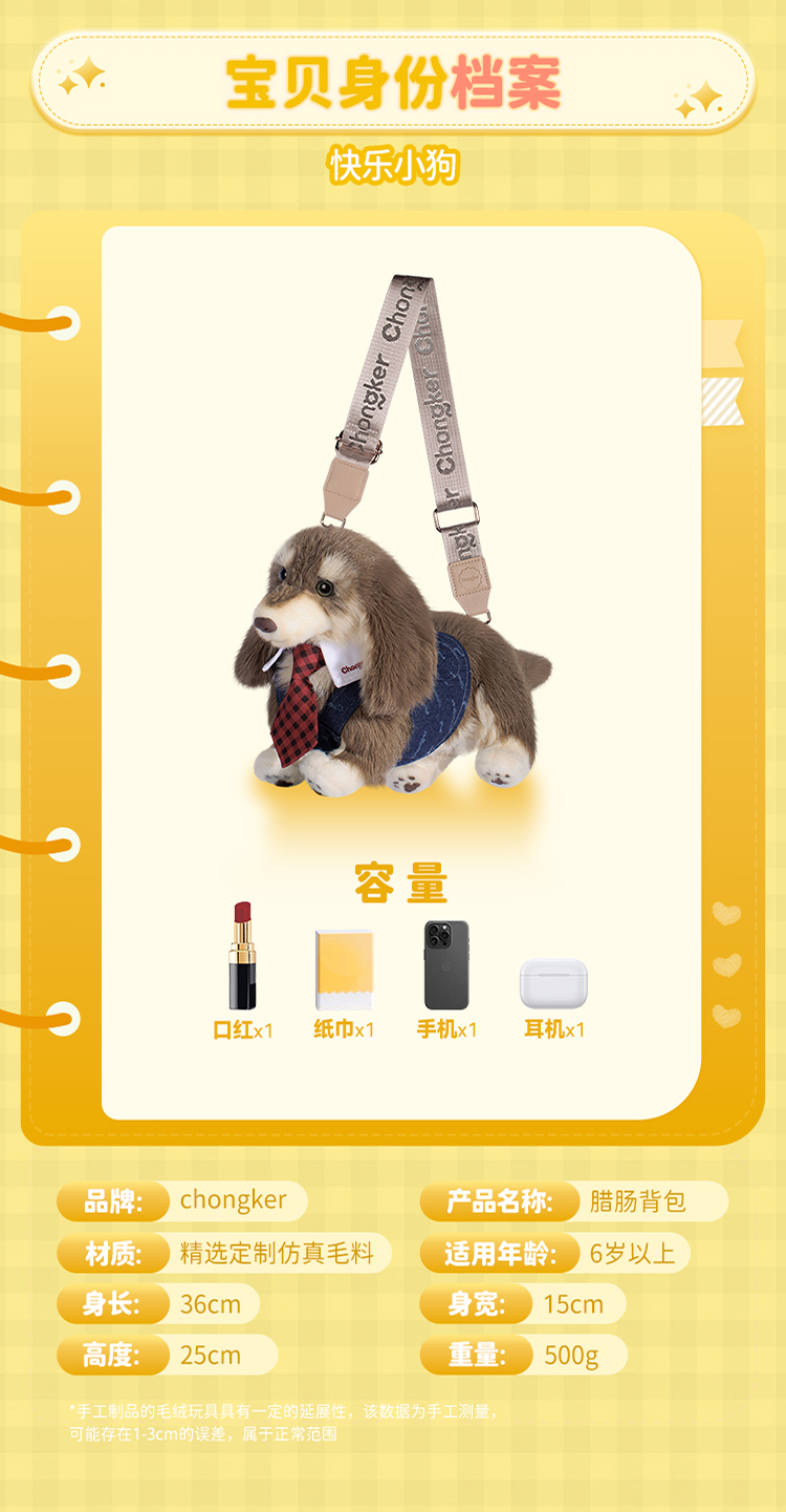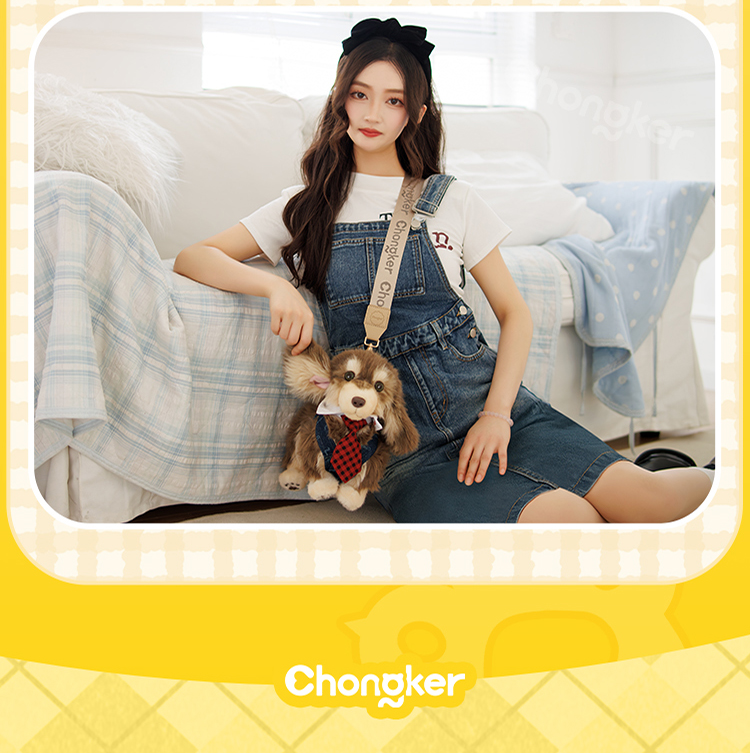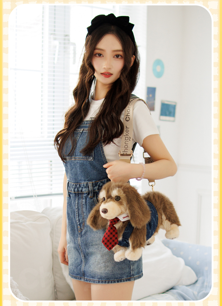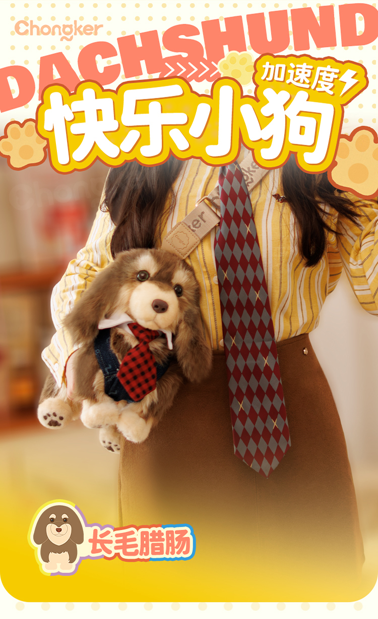 Chongker/宠客 腊肠狗包包仿真毛绒公仔单肩包生日礼物