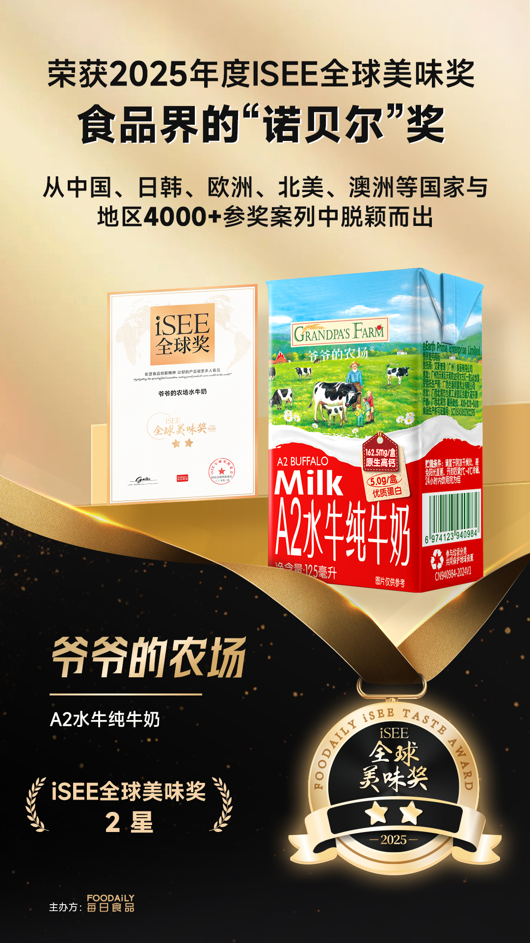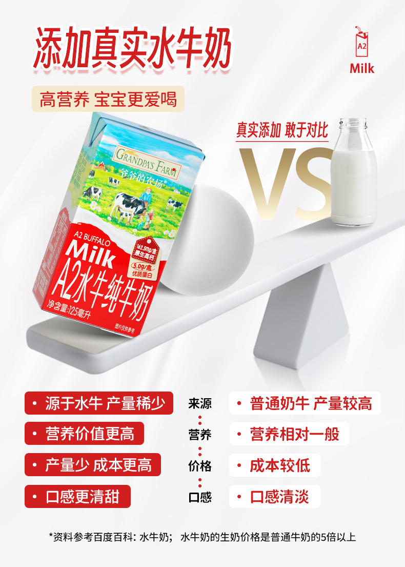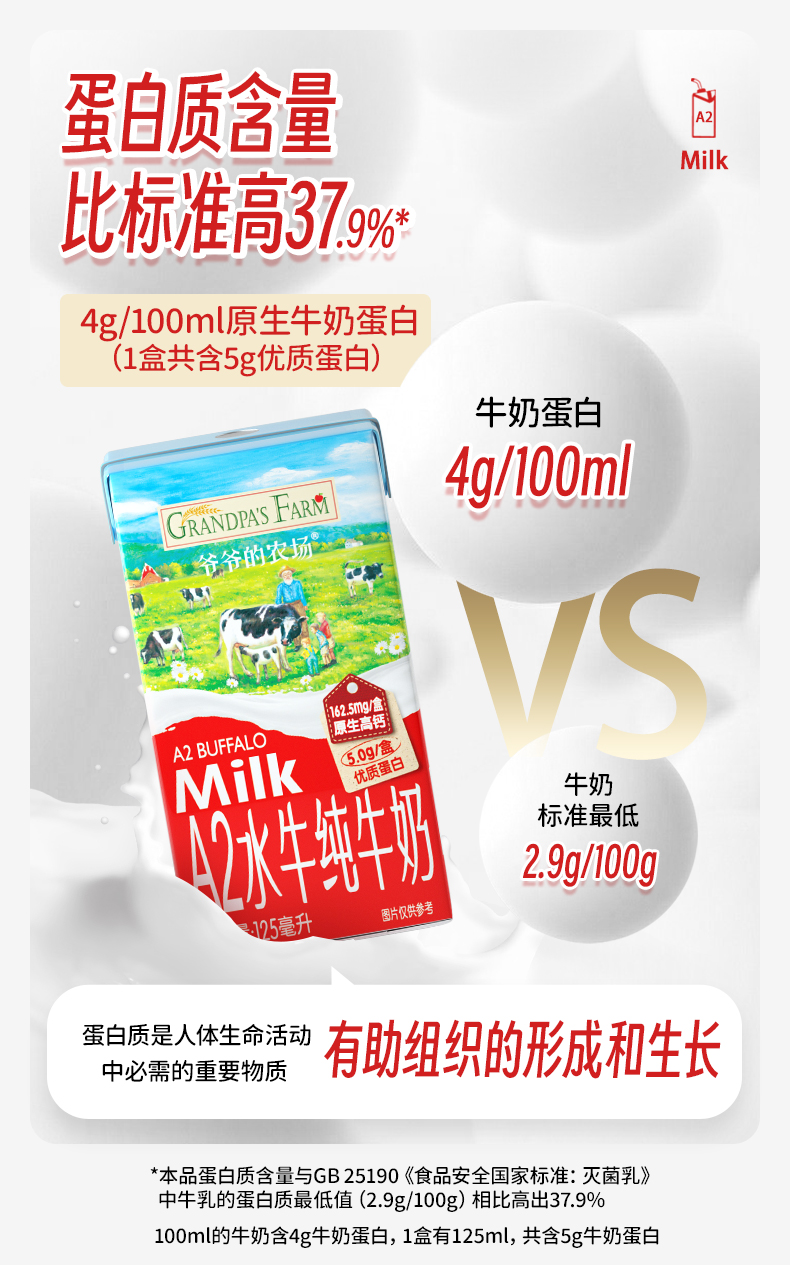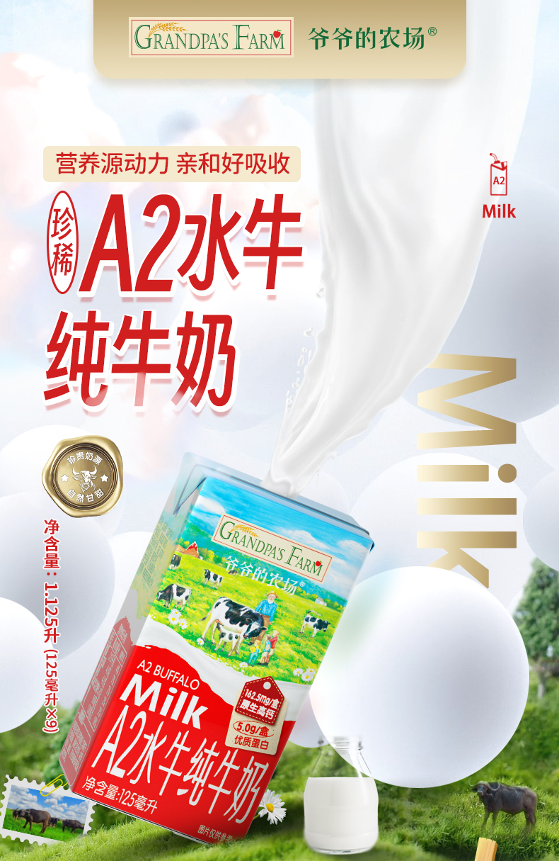 爷爷的农场A2水牛纯牛奶125ml*9
