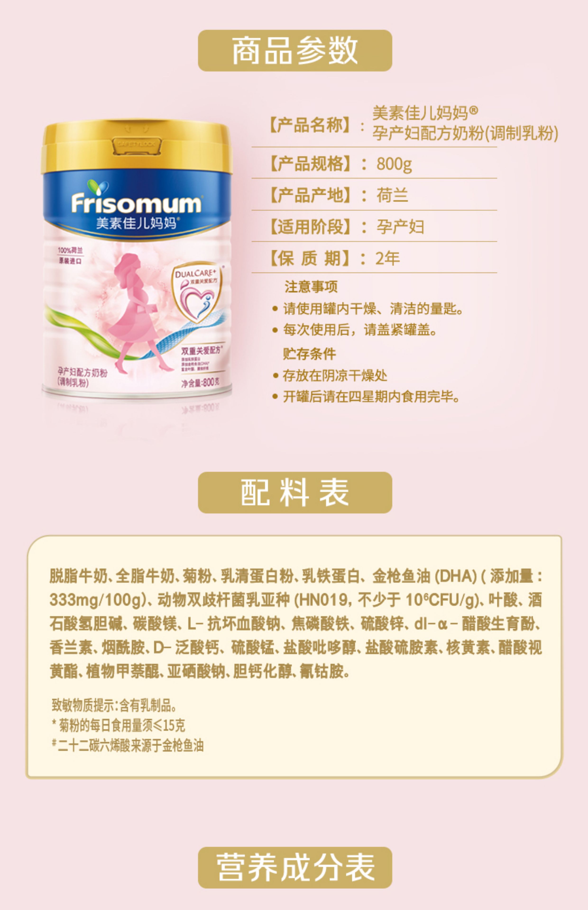 美素佳儿妈妈孕产妇配方奶粉(调制乳粉)罐装800克