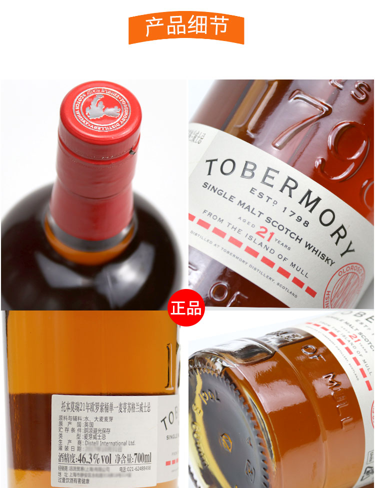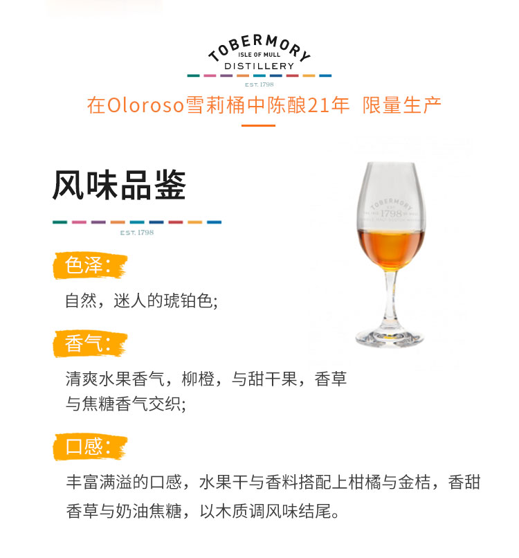 托本莫瑞21年欧罗索桶单一麦芽苏格兰威士忌