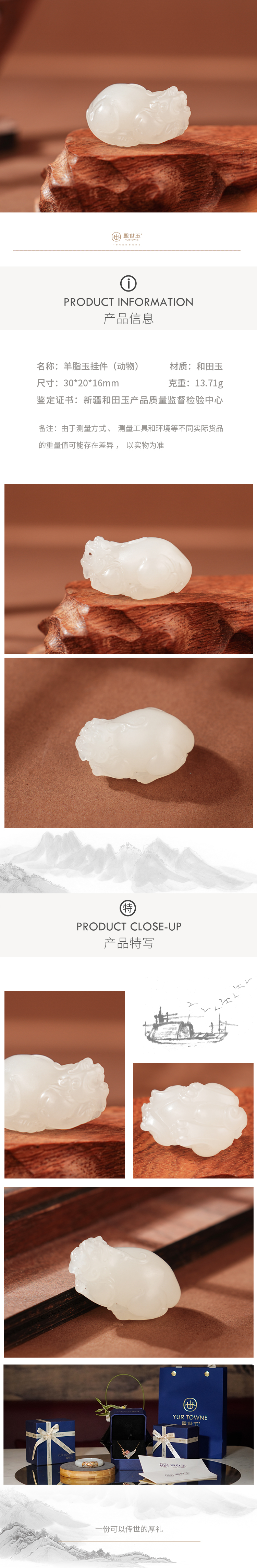 新疆国玉盟世玉【凝润貅灵】羊脂玉挂件【带证书·顺丰物流】