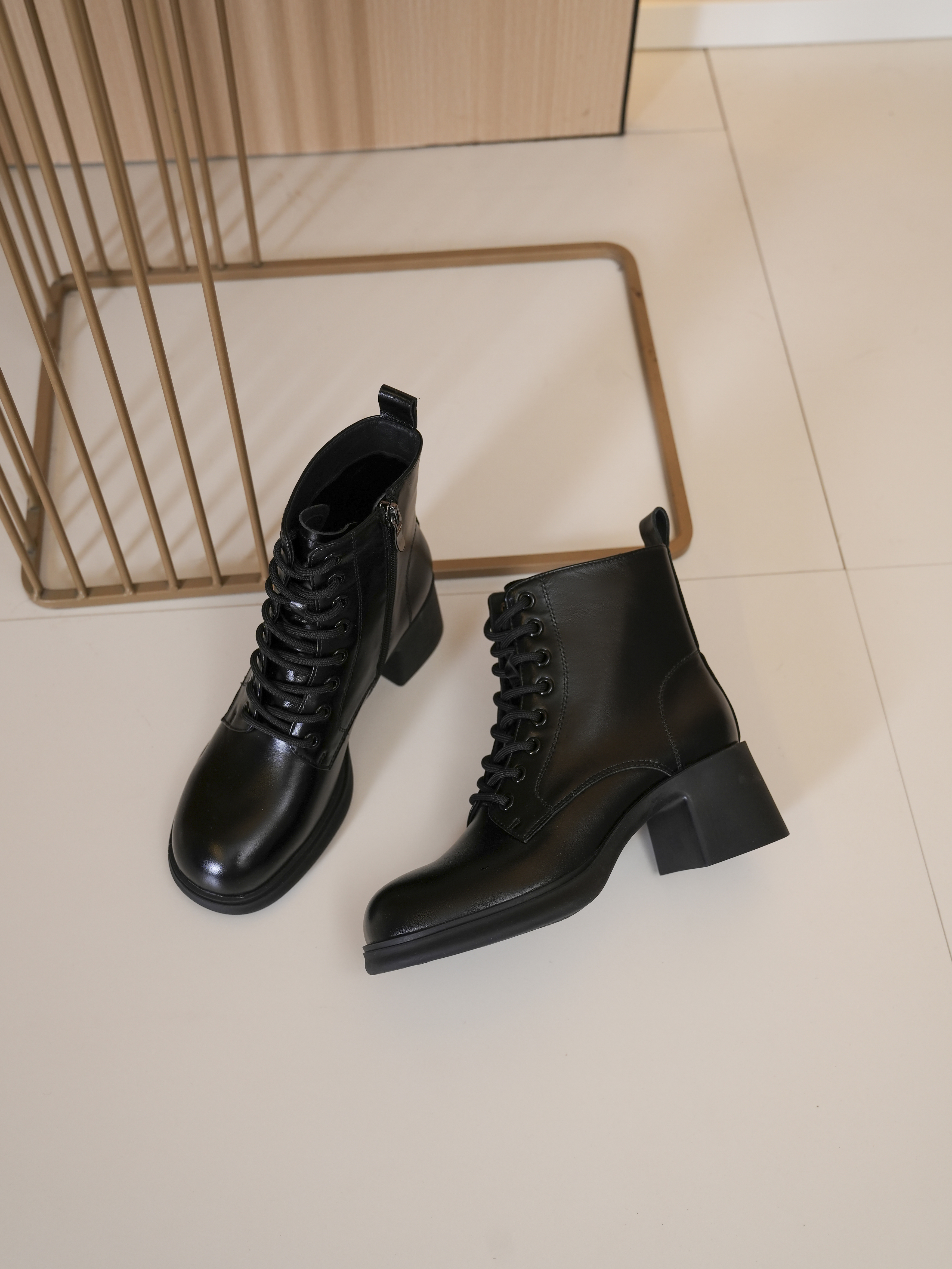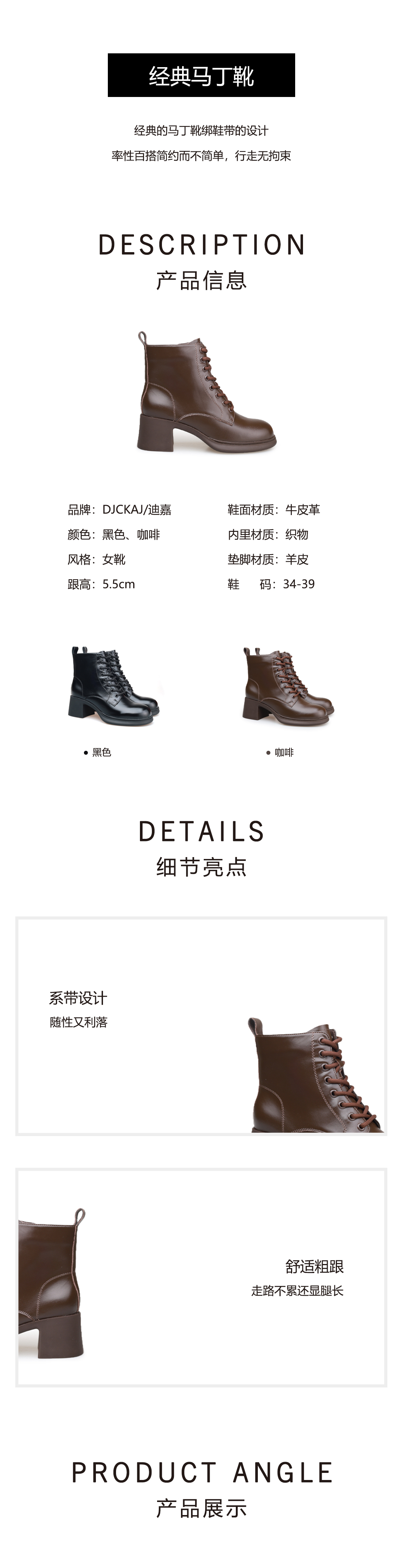 豪麟名鞋奥莱迪嘉女鞋牛皮革马丁靴DJYRA52WN050黑色 原价2460元