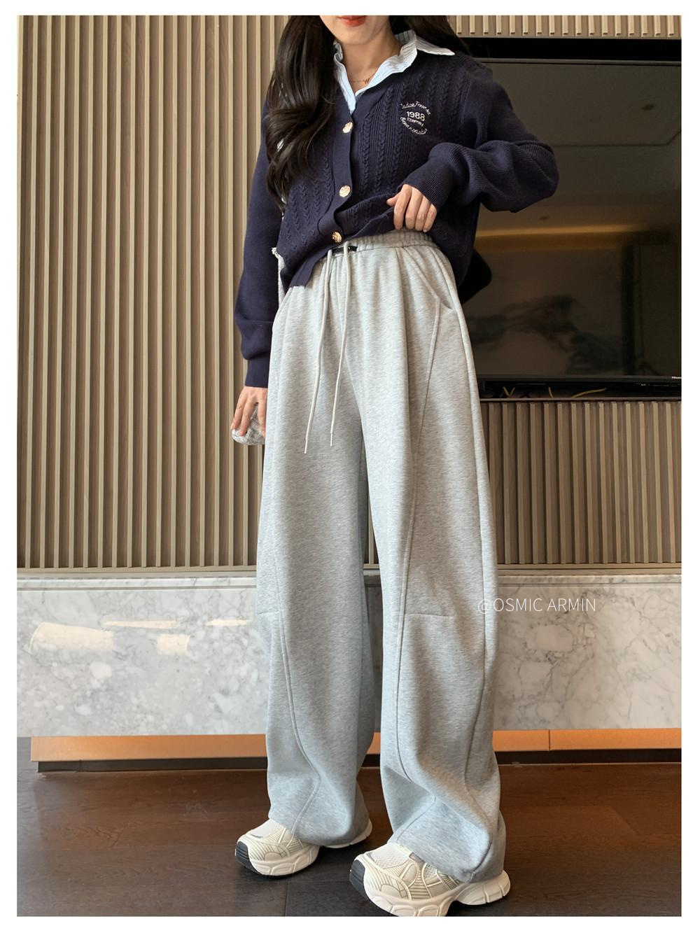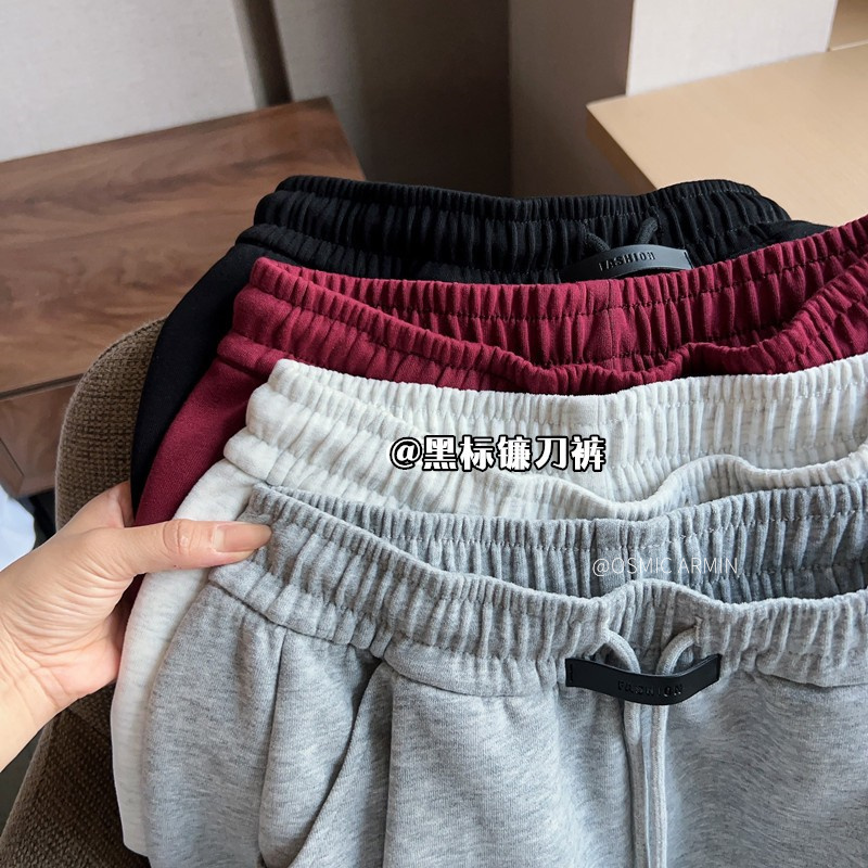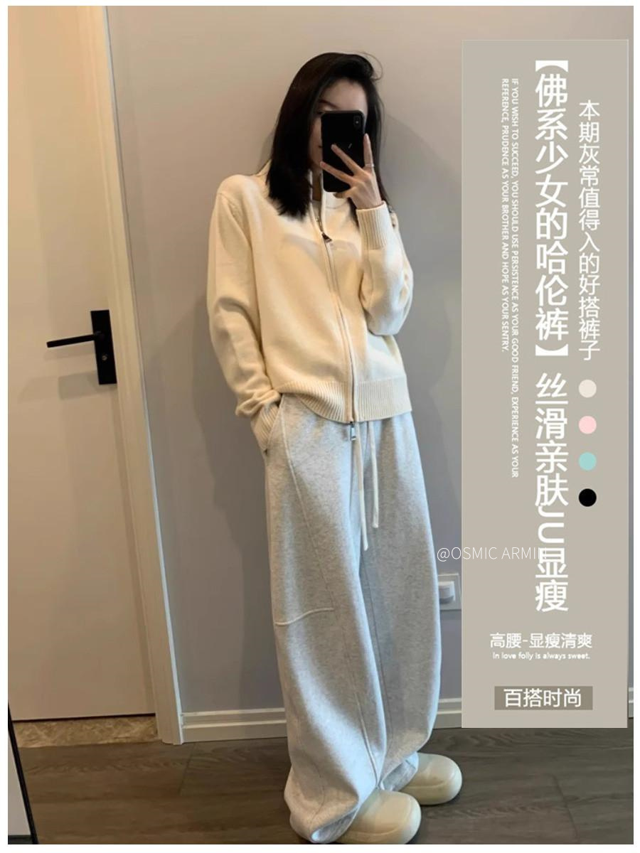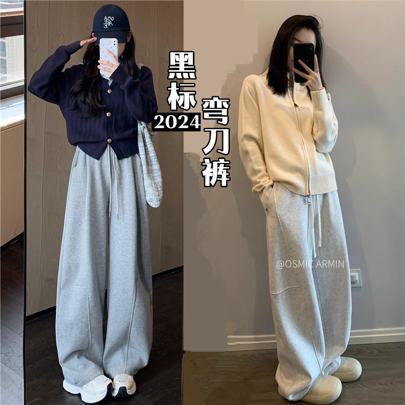 专治胯宽 腿粗腿不直【 OSMIC ARMIN 五色加绒黑标弯刀裤】显瘦休闲裤神仙裤子松紧高腰显腿直深灰色拼接镰刀阔腿裤女秋季高腰显瘦美式卫裤休闲直筒香蕉运动裤