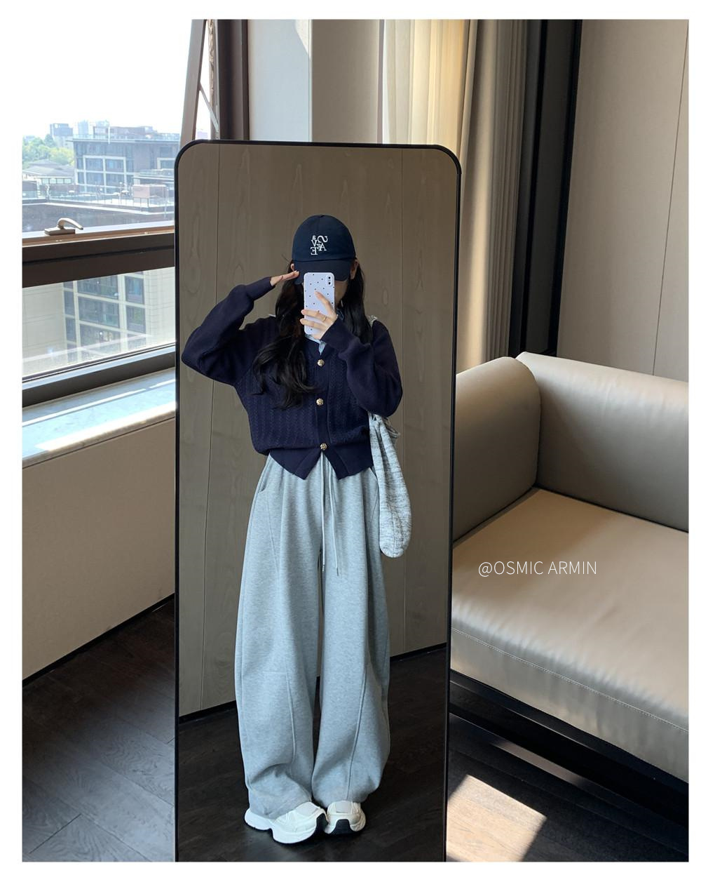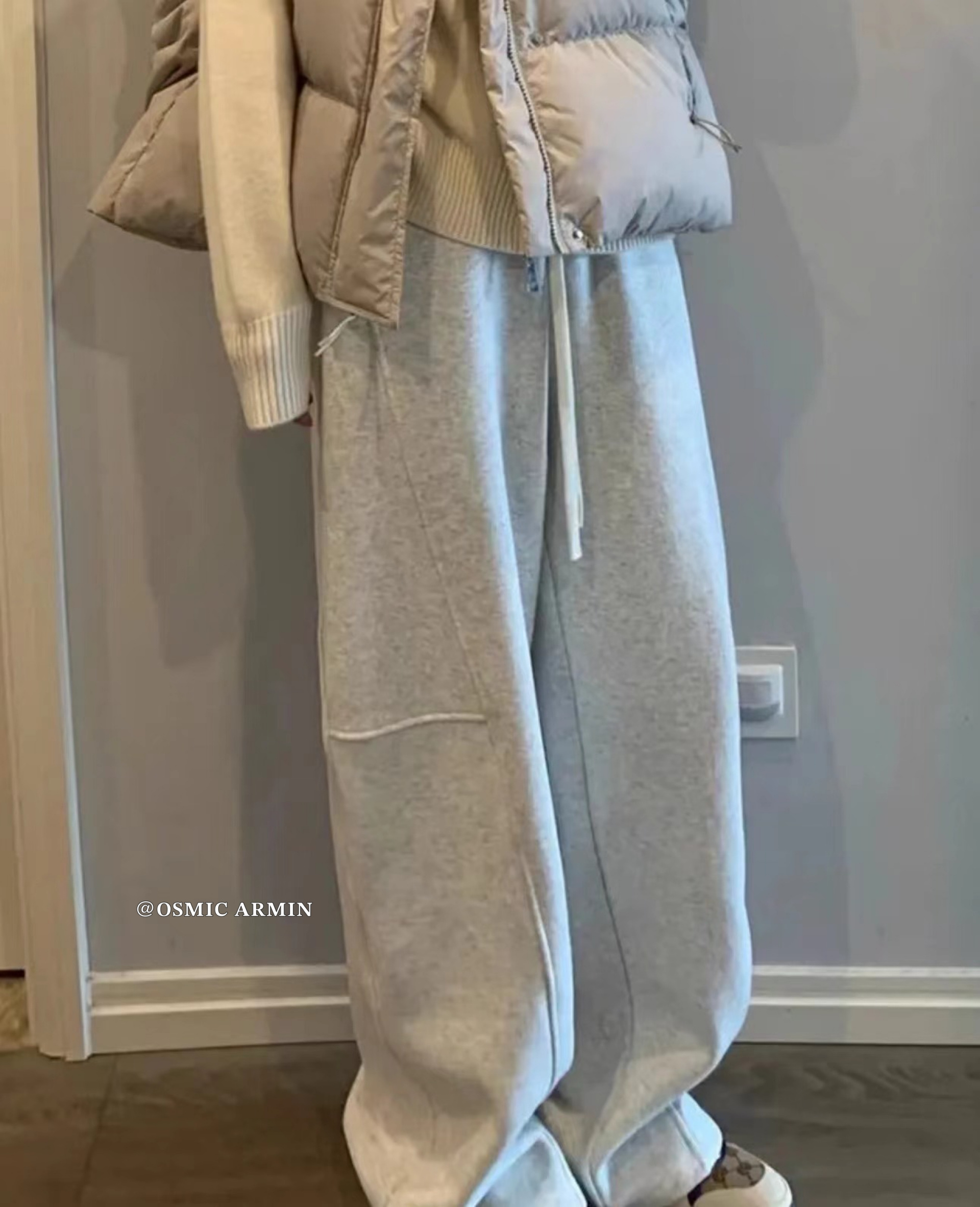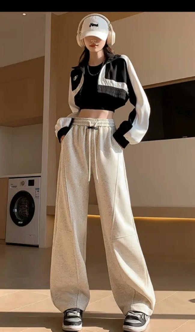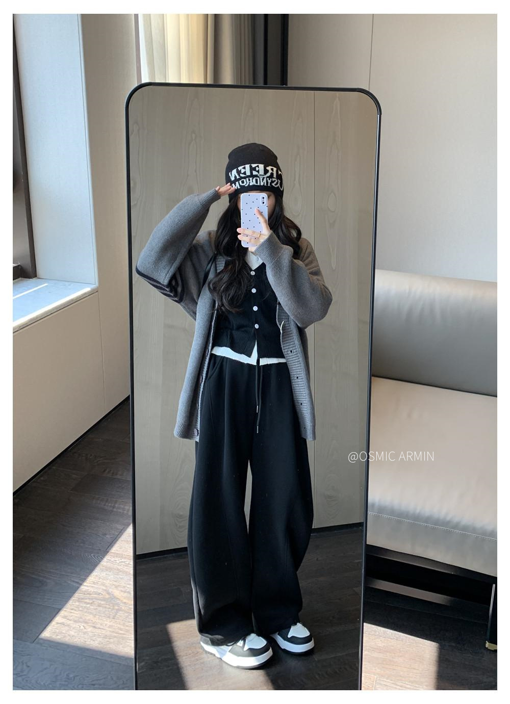 专治胯宽 腿粗腿不直【 OSMIC ARMIN 五色加绒黑标弯刀裤】显瘦休闲裤神仙裤子松紧高腰显腿直深灰色拼接镰刀阔腿裤女秋季高腰显瘦美式卫裤休闲直筒香蕉运动裤