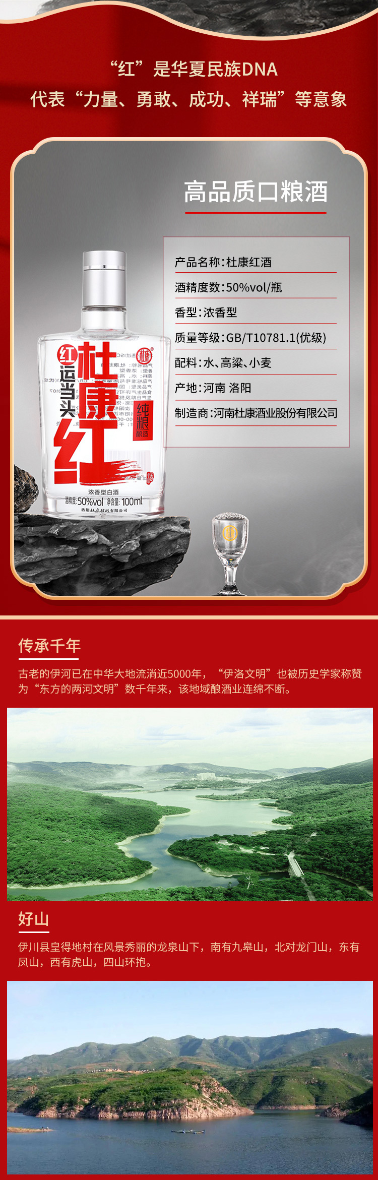 杜康红 酒50度100ml*1瓶浓香型白酒纯粮酒