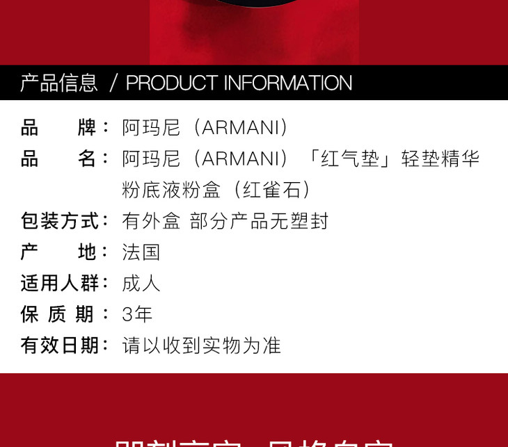 【底妆大师】阿玛尼(ARMANI)「红雀石气垫」 轻垫精华粉底液粉盒(红雀石)