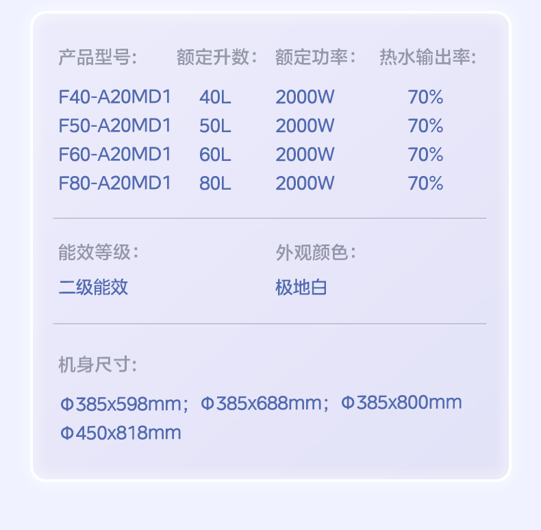 美的 F60-A20MD1(HI) 电热水器 极地白 机械 防电墙款非智能