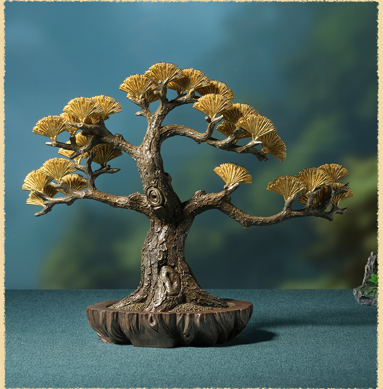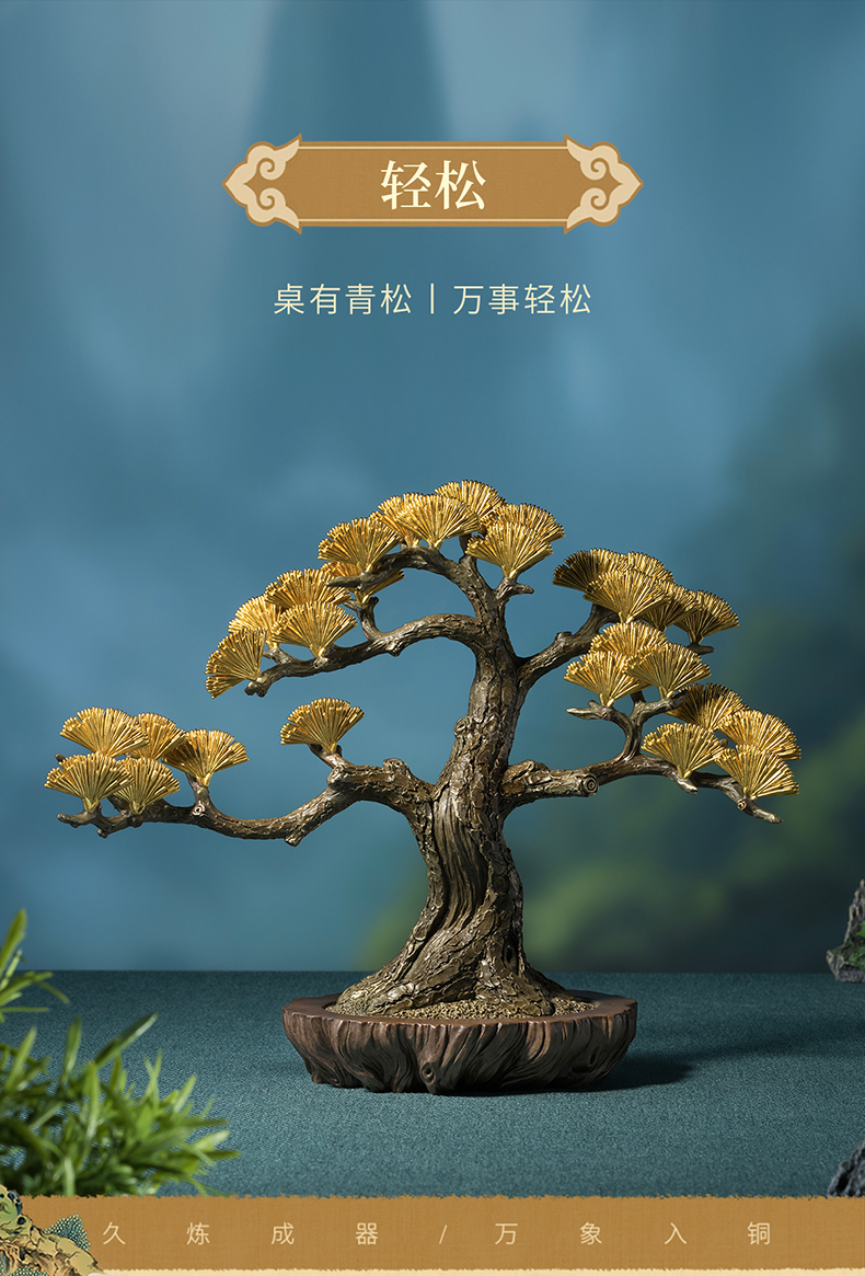 铜师傅《轻松》客厅桌面松树铜摆件 家居装饰工艺品摆件