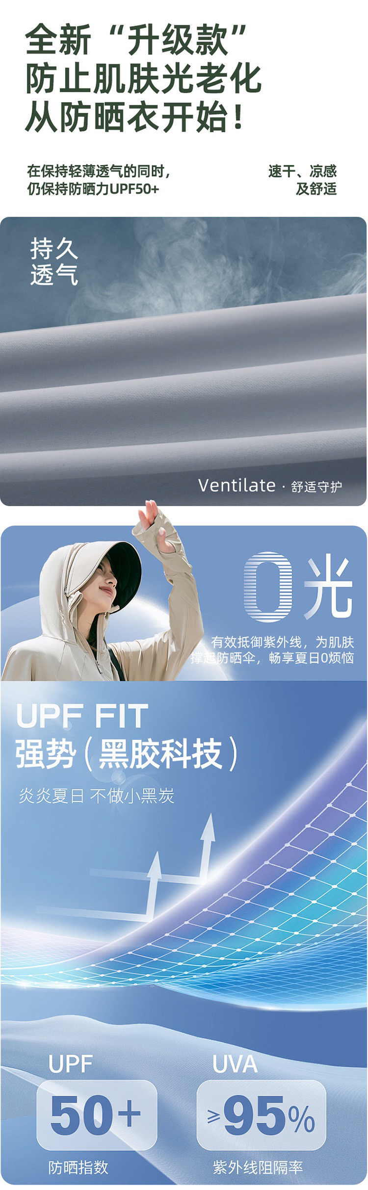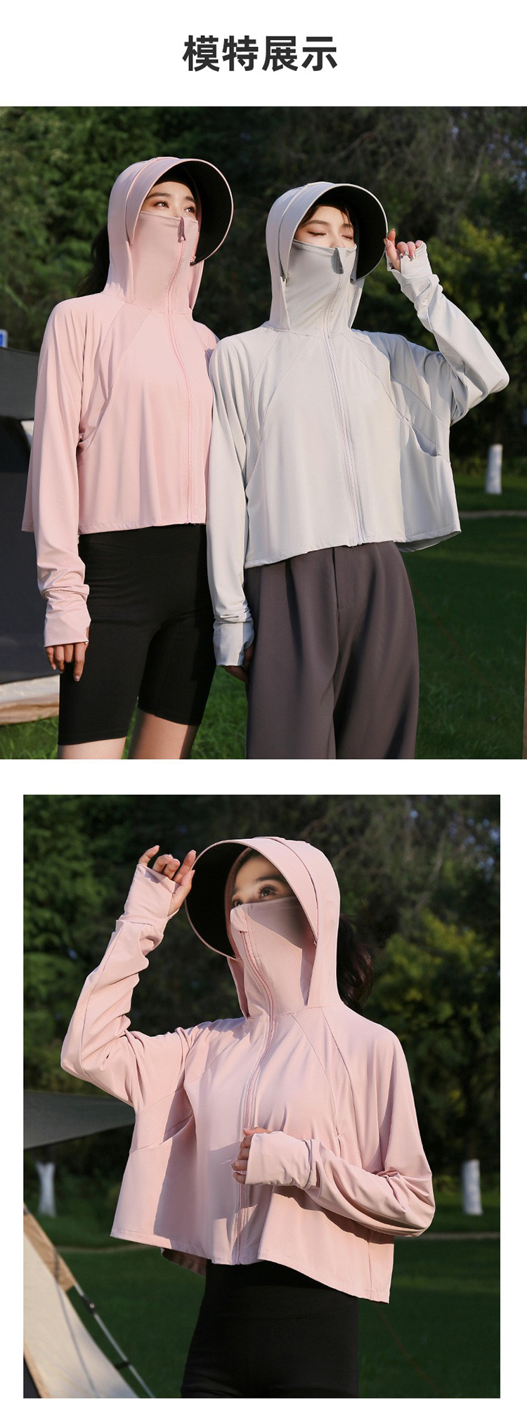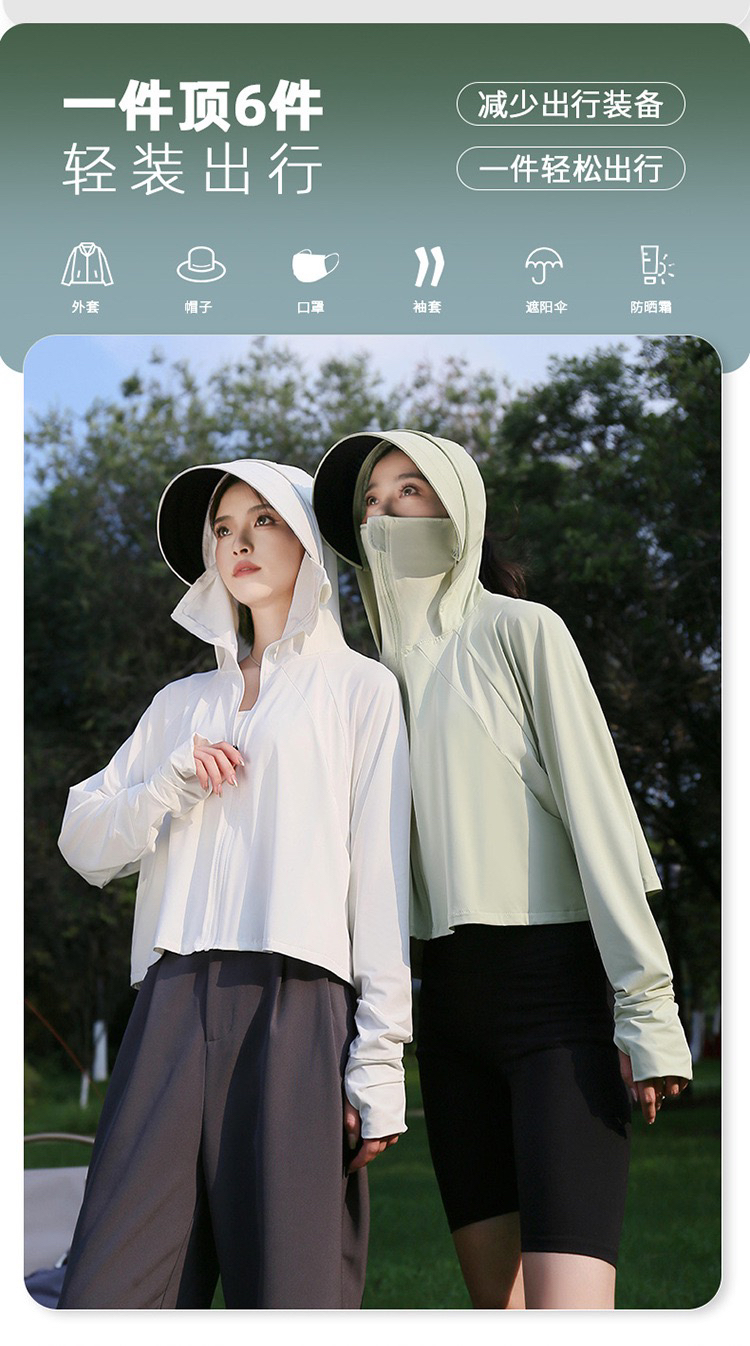 户外防晒衣女夏季2024新款黑胶冰丝原纱防紫外线罩衫骑车薄防晒服