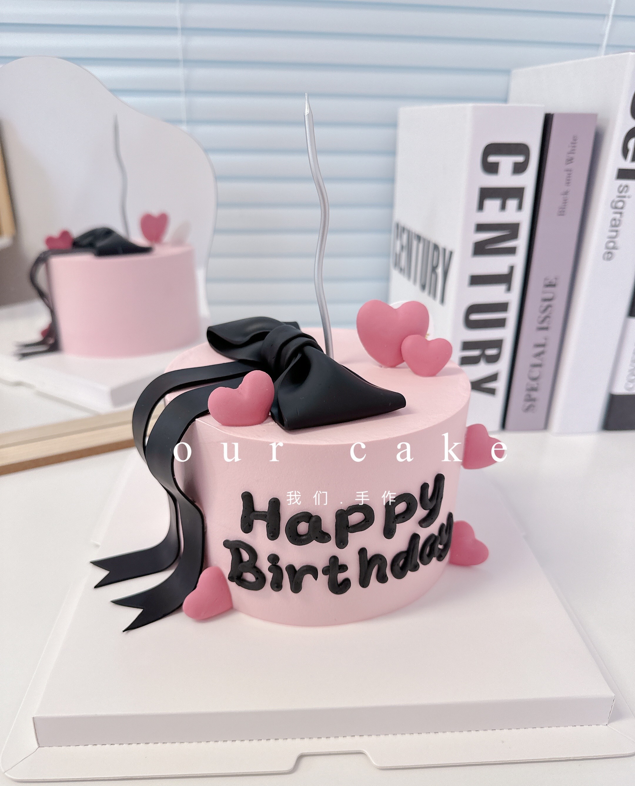 粉色爱心蝴蝶结蛋糕-低糖处理无添加