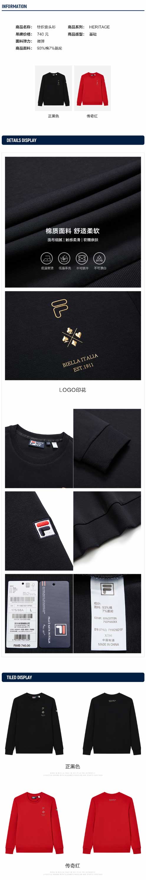 FILA【张艺兴同款】男子卫衣 2022年新款红色圆领针织衫F11M218215F
